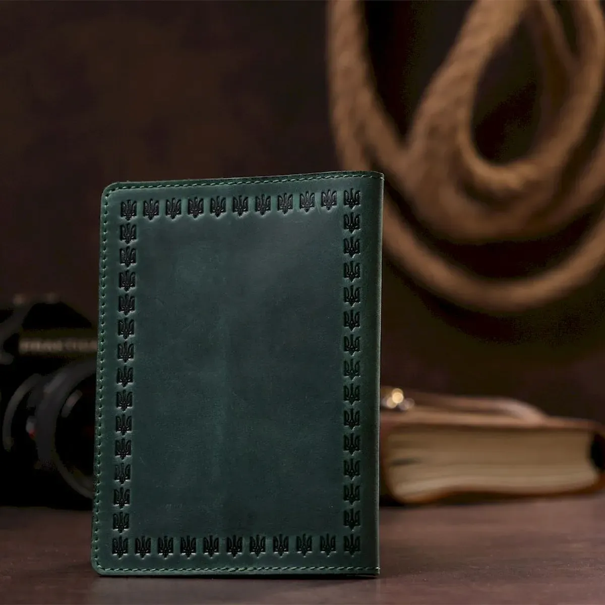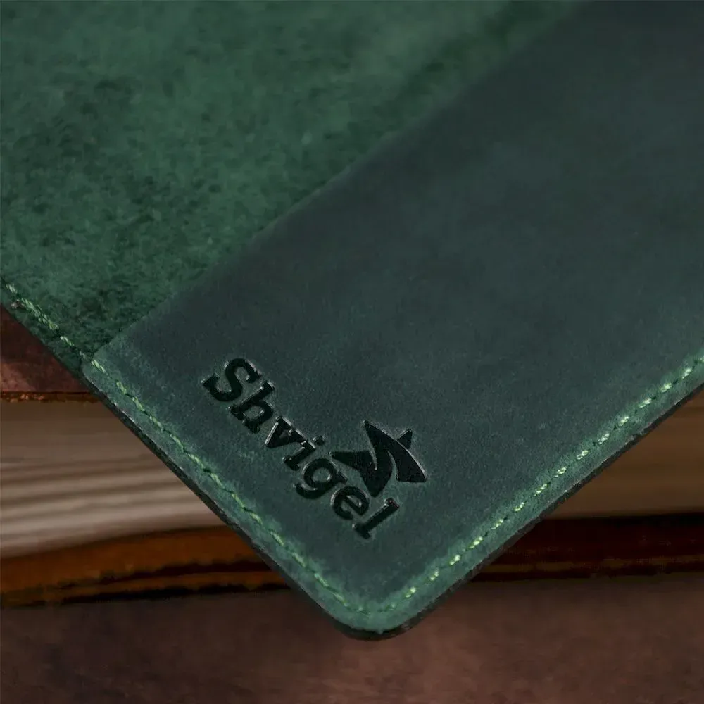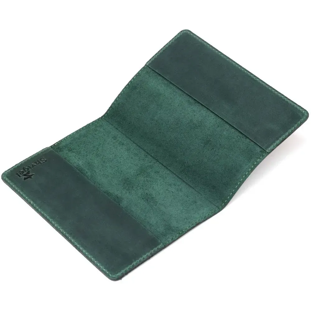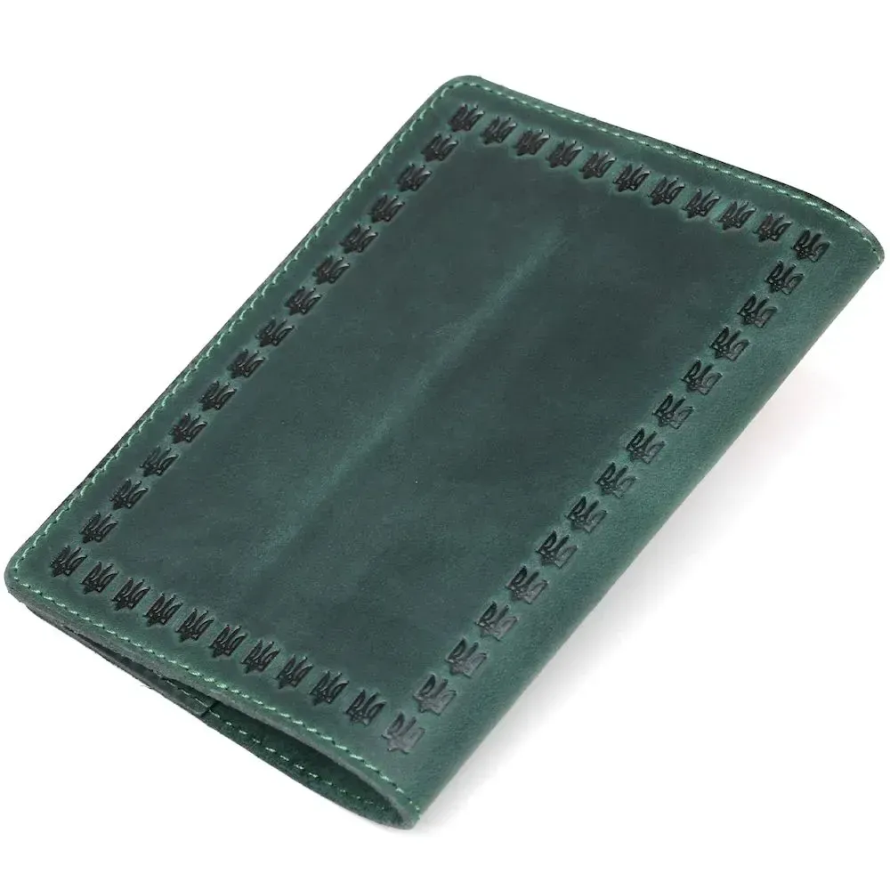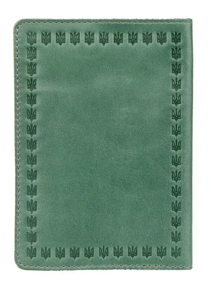Стильна та яскрава обкладинка на паспорт, зеленого кольору з тисненням, виготовлена з високоякісної натуральної шкіри.