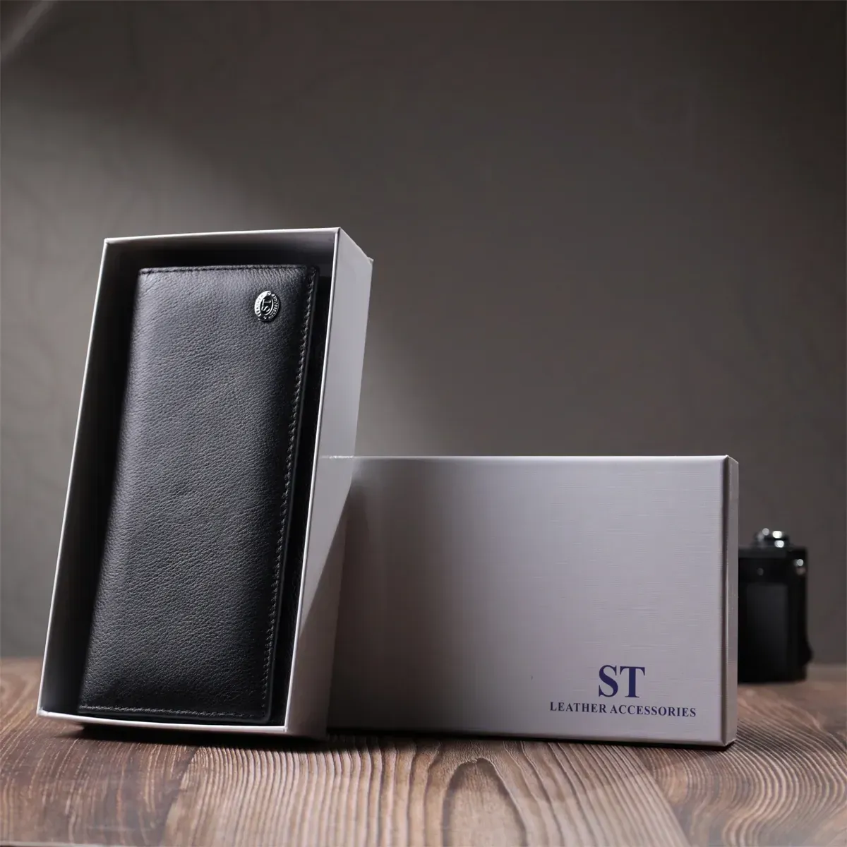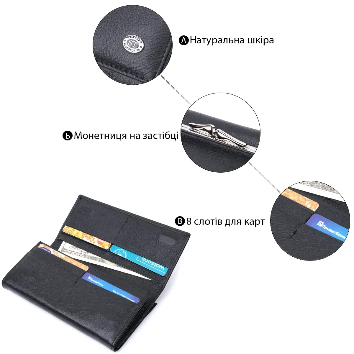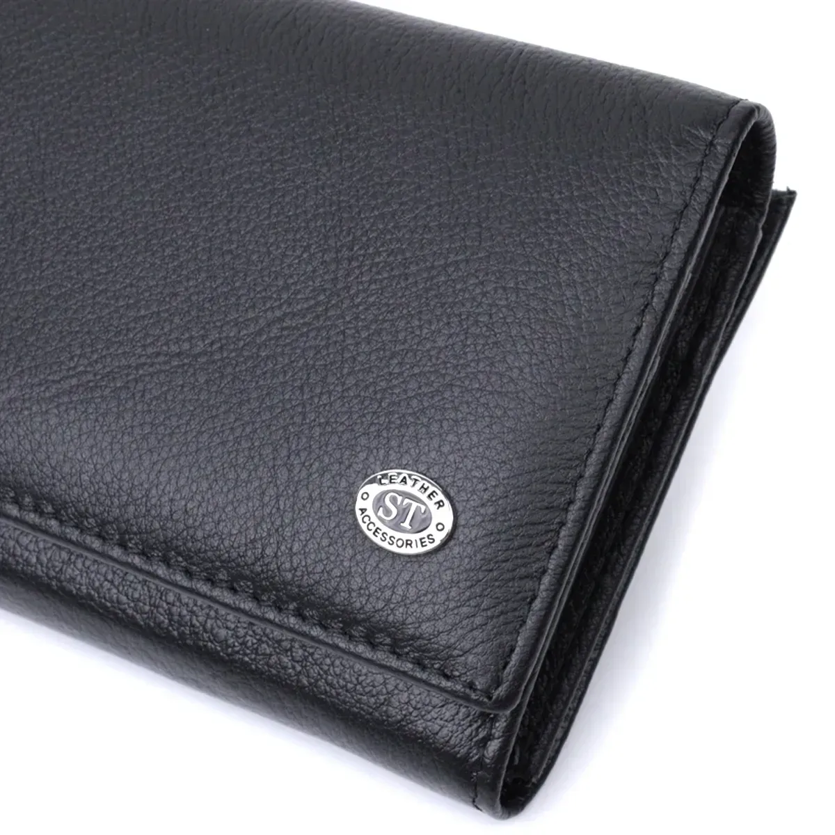 Добротне жіноче портмоне з кишенею для монет із натуральної шкіри ST Leather 22691 Чорний