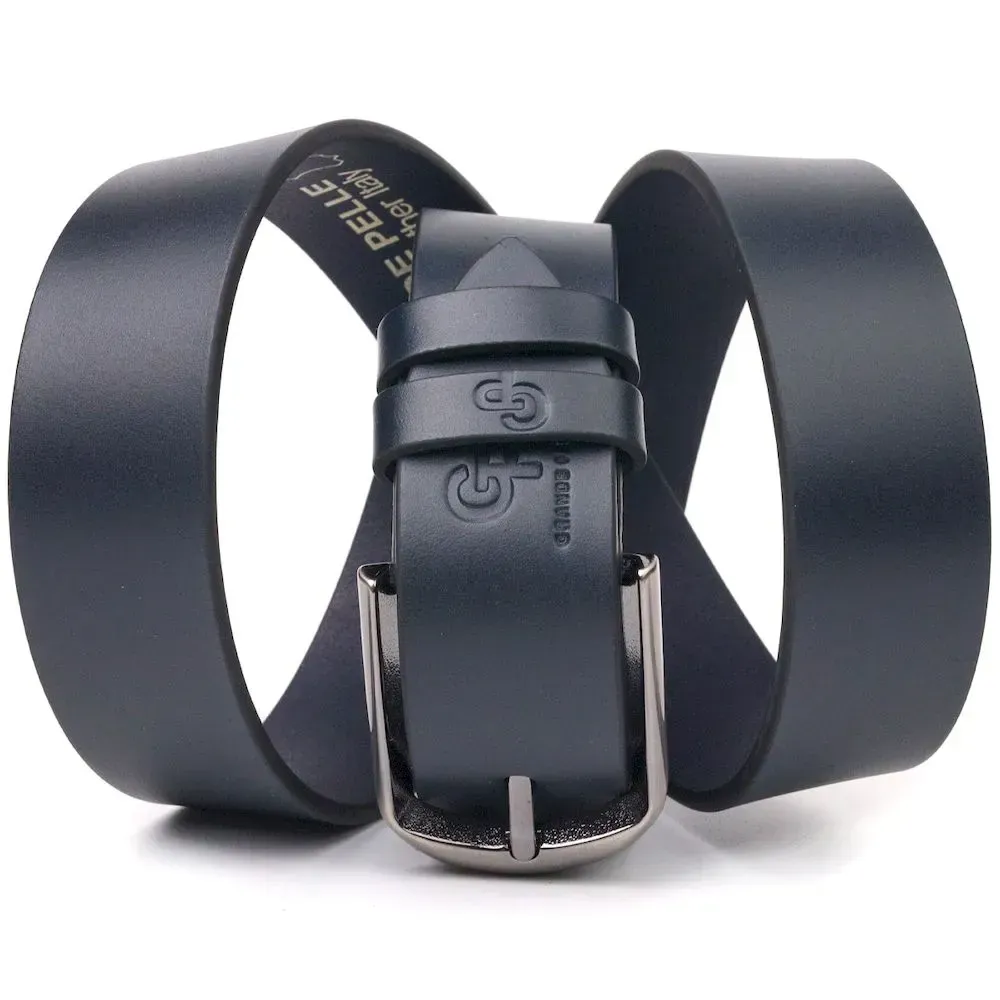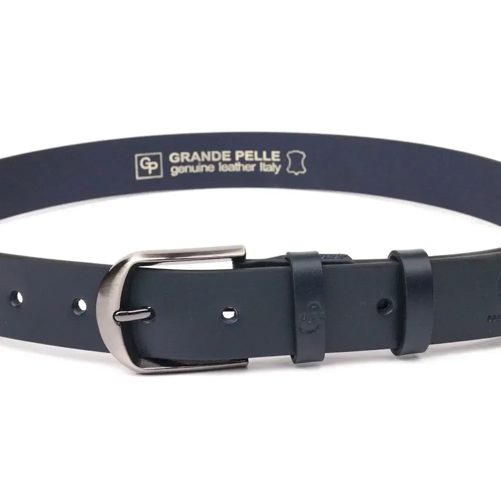 Красивий шкіряний ремінь синього кольору з натуральної італійської шкіри, від українського виробника. Хороший ремінь здатний ідеально завершити образ та підкреслити ваш статус. Ремінь виготовлений із цілісного полотна шкіри. Аксесуар має гладку фактуру, акуратно пошитий, довжина регулюється у менший бік. Доповнено ремінець сріблястою пряжкою із закругленими кутами. Шкіряний ремінь один із найвдаліших і потрібних подарунків для будь-якого чоловіка.