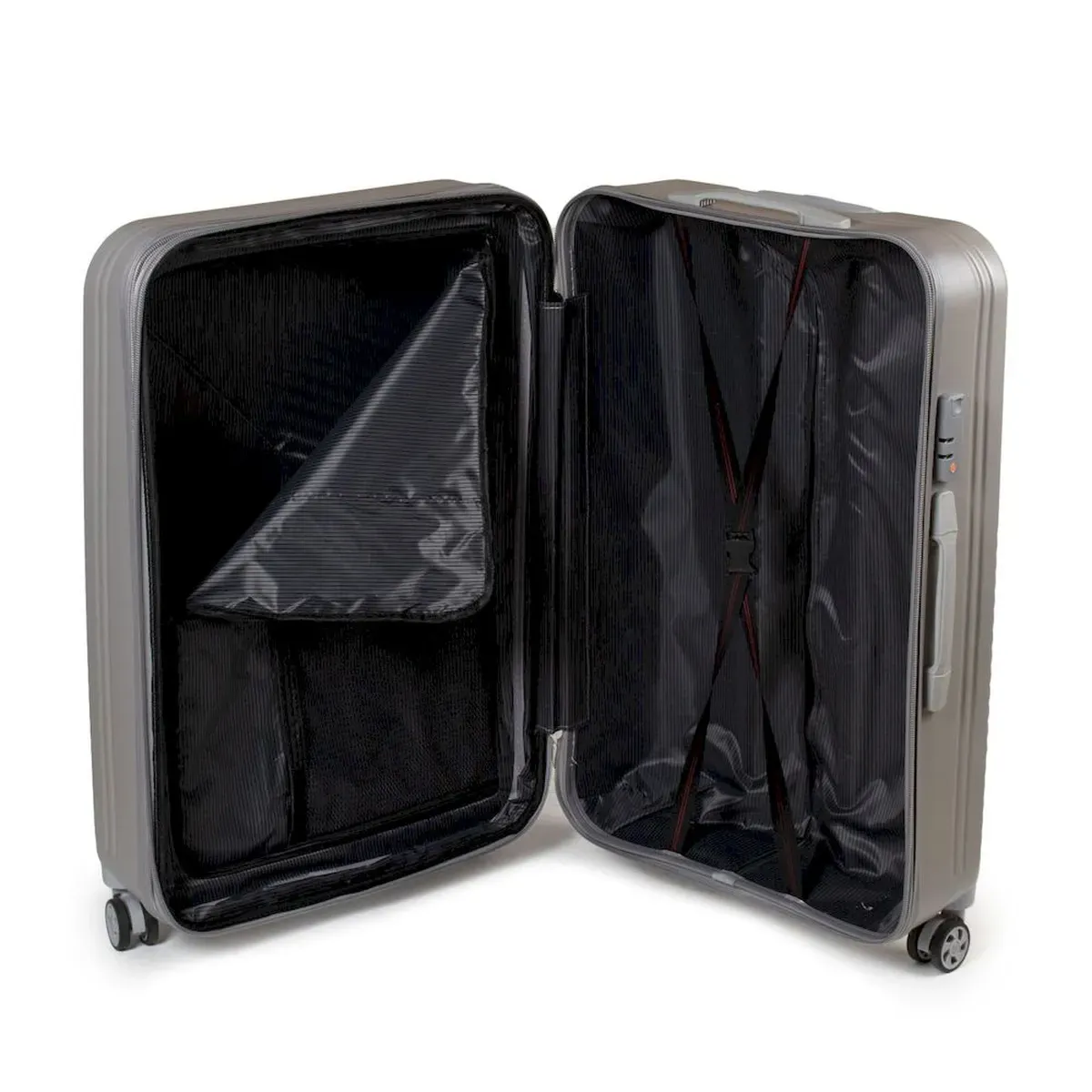 Пластикова валіза, виготовлена з удароміцного ABS пластику. Закривається на блискавку із кодовим замком. Об'єм валізи можна збільшити використовуючи блискавку розширення (збільшує глибину валізи на 3см). 4 поліуретанові подвійні колеса. Усередині валізи є подвійне відділення з кишенею-перегородкою на блискавці для дрібних речей та стяжки-гумки для фіксації багажу.