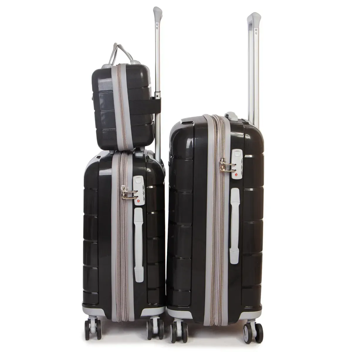 Найменша валіза може використовуватися як ручна поклажа. А також кріпитися на висувну ручку валізи.