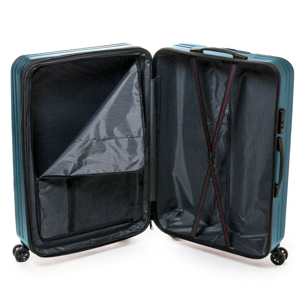 Пластикова валіза, виконана з удароміцного ABS пластику. Закривається на блискавку із кодовим замком. Об'єм валізи можна збільшити використовуючи блискавку розширення (збільшує глибину валізи на 3см). 4 поліуретанові подвійні колеса. Усередині валізи є подвійне відділення з кишенею-перегородкою на блискавці для дрібних речей та стяжки-гумки для фіксації багажу.