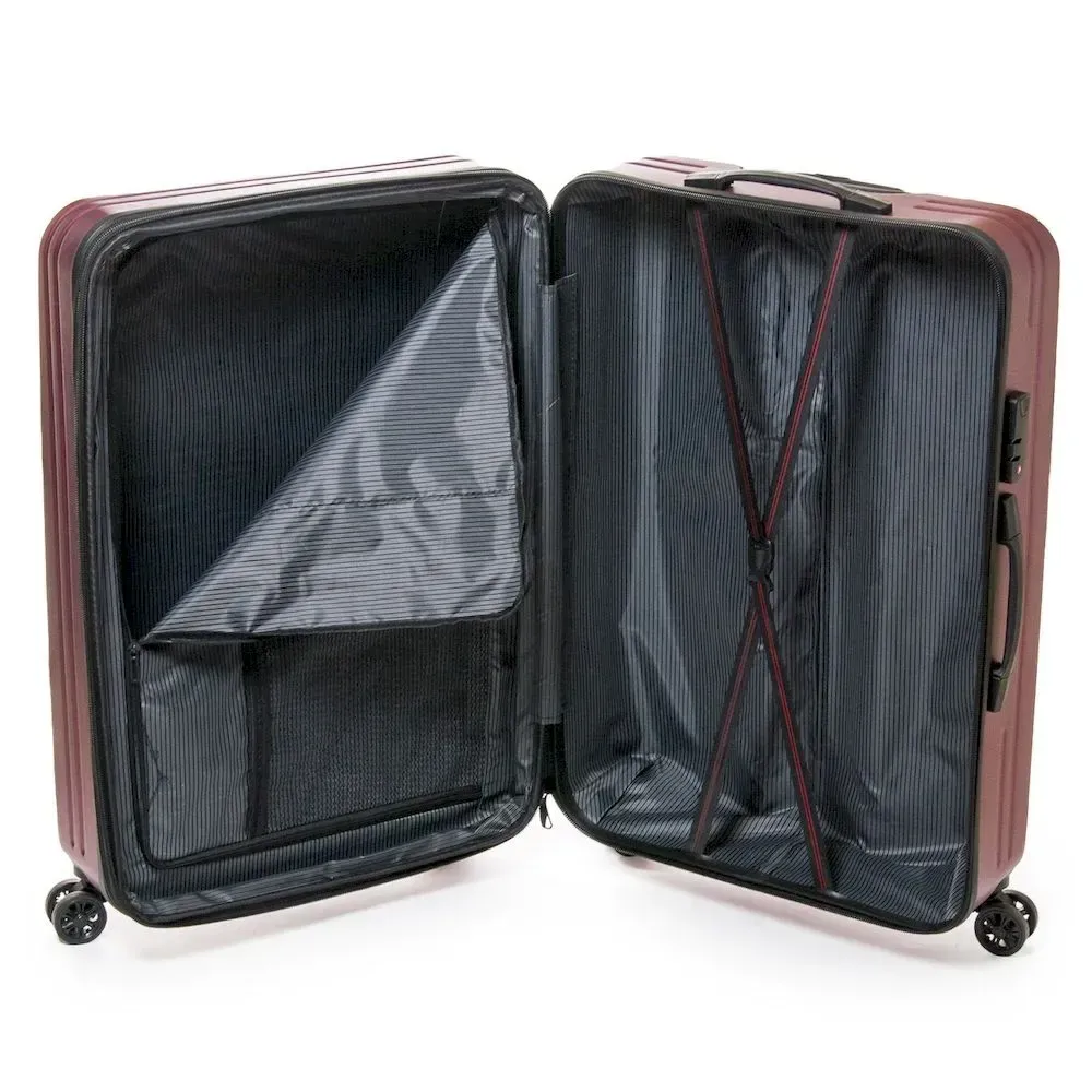 Пластикова валіза, виконана з удароміцного ABS пластику. Закривається на блискавку із кодовим замком. Об'єм валізи можна збільшити використовуючи блискавку розширення (збільшує глибину валізи на 3см). 4 поліуретанові подвійні колеса. Усередині валізи є подвійне відділення з кишенею-перегородкою на блискавці для дрібних речей та стяжки-гумки для фіксації багажу.