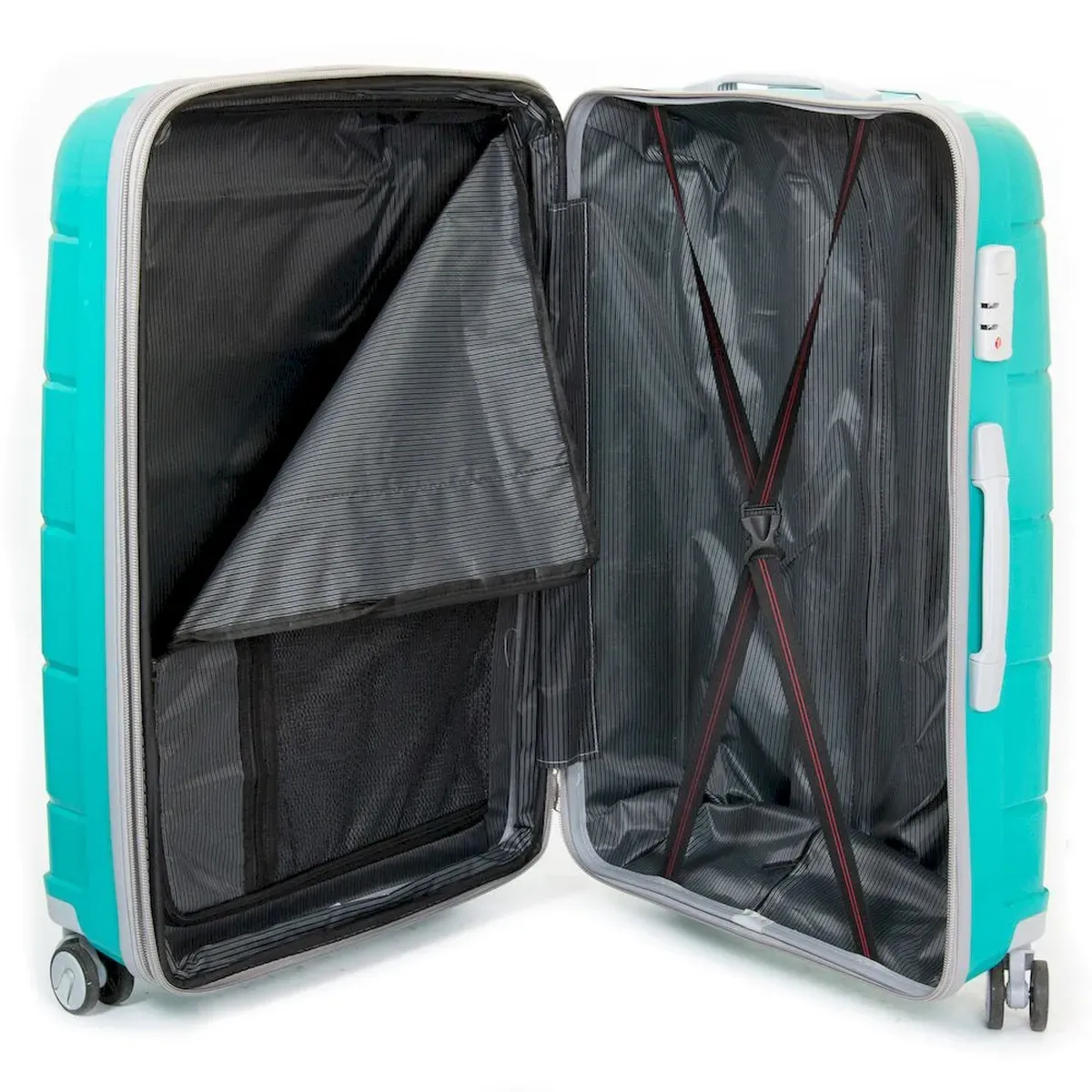 Пластикова валіза, виконана з удароміцного ABS пластику. Закривається на блискавку із кодовим замком. Об'єм валізи можна збільшити використовуючи блискавку розширення (збільшує глибину валізи на 3см). 4 поліуретанові подвійні колеса з гумовою зовнішньою частиною. Всередині валізи є подвійне відділення з кишенею-перегородкою на блискавці для дрібних речей та стяжки-гумки для фіксації багажу. Розміри (висота/ширина/глибина см) без урахування коліс: