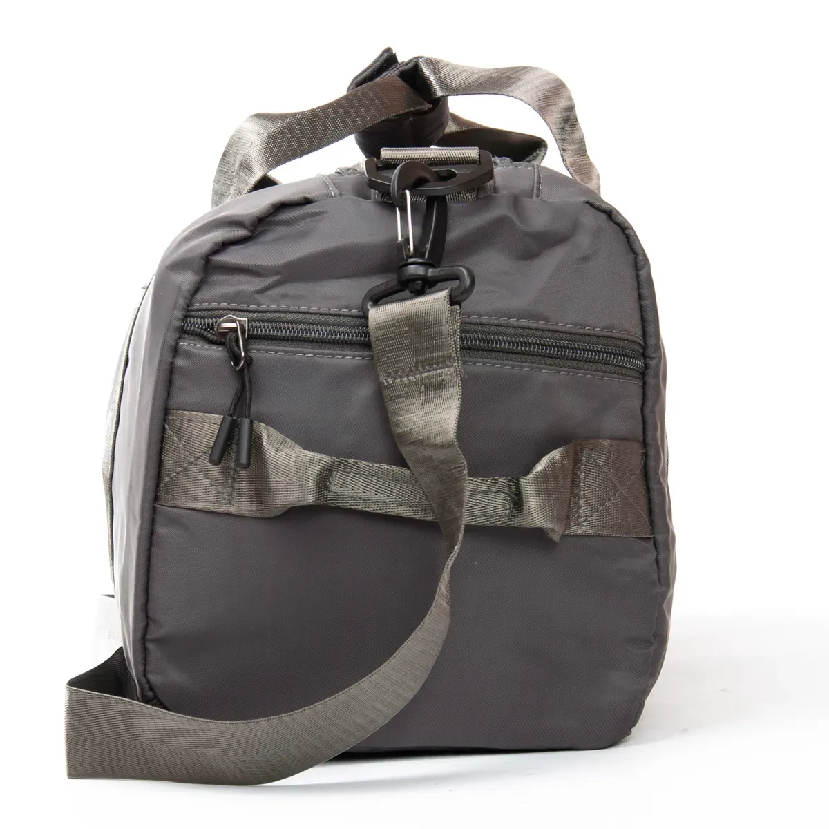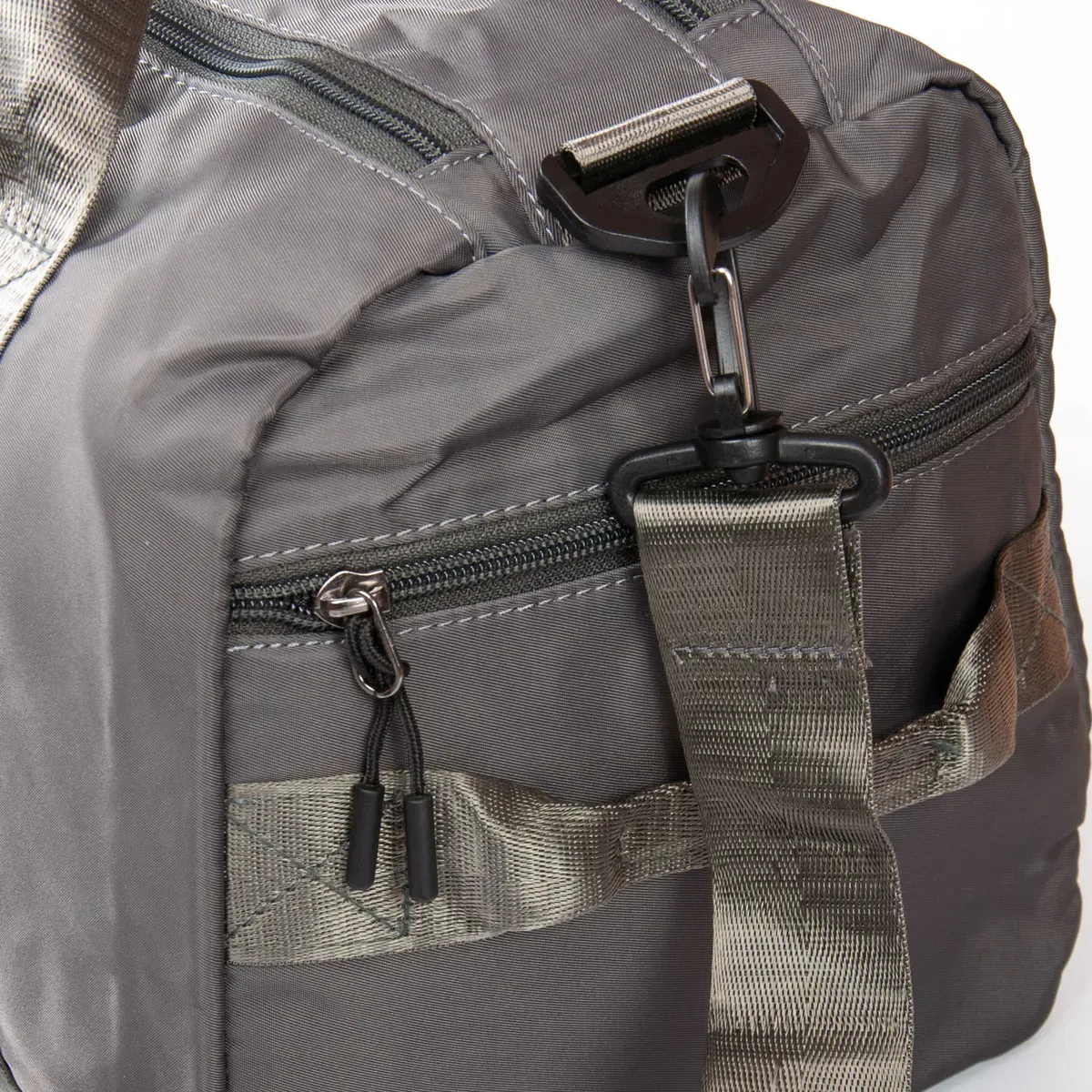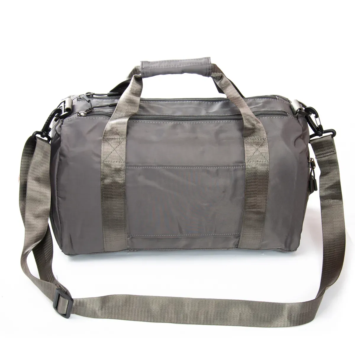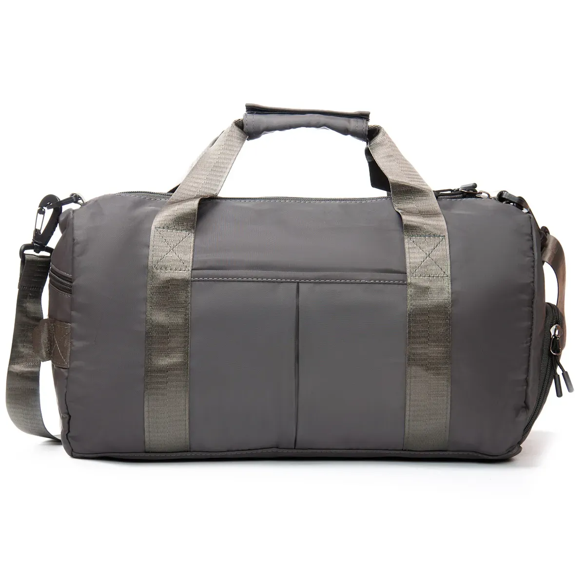 Одно отделение, закрывается на молнию. Внутри отделения есть большой боковой карман на молнии. Снаружи также расположен большой карман-отделение на молнии с герметичной подкладкой. На фасаде находится один открытый карман. На обратной стороне есть крепление на ручку чемодана. На торцах сумки есть два кармана на молнии, один из которых предназначен для обуви.