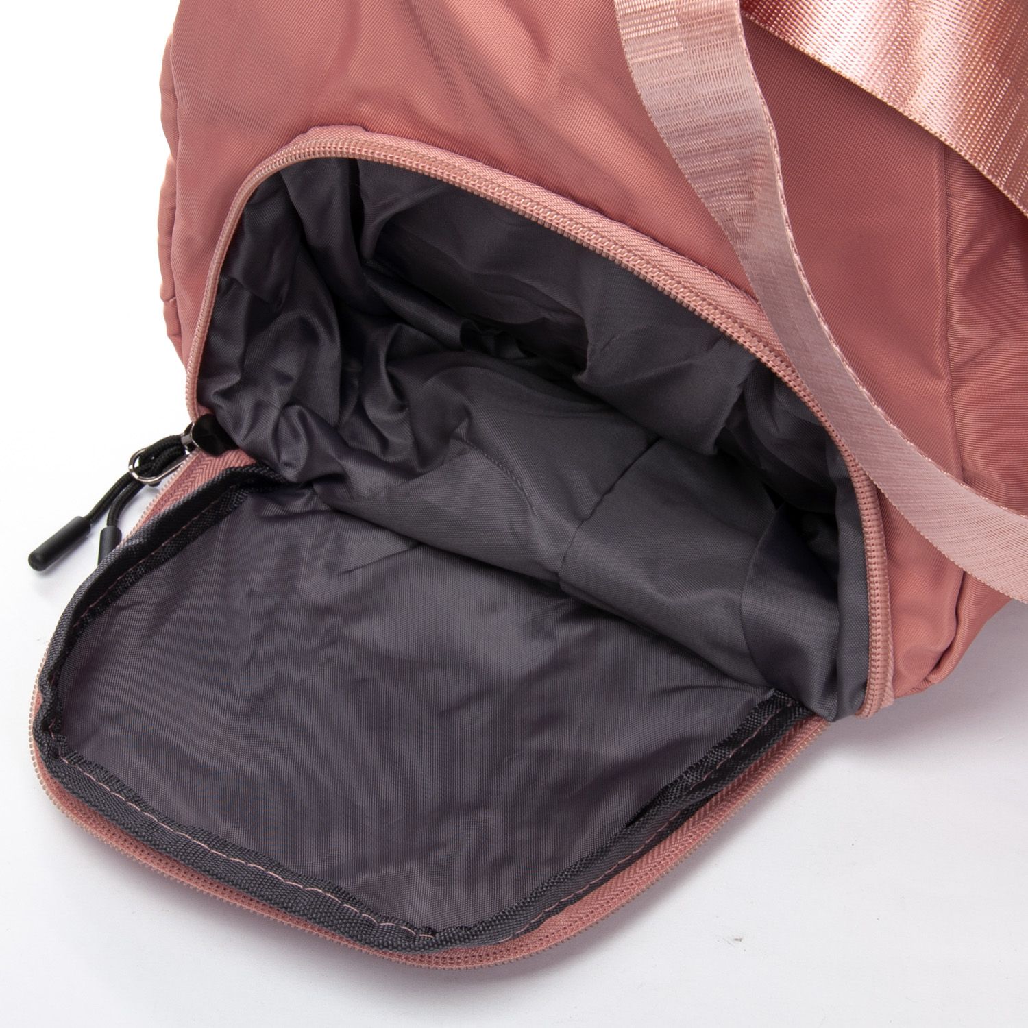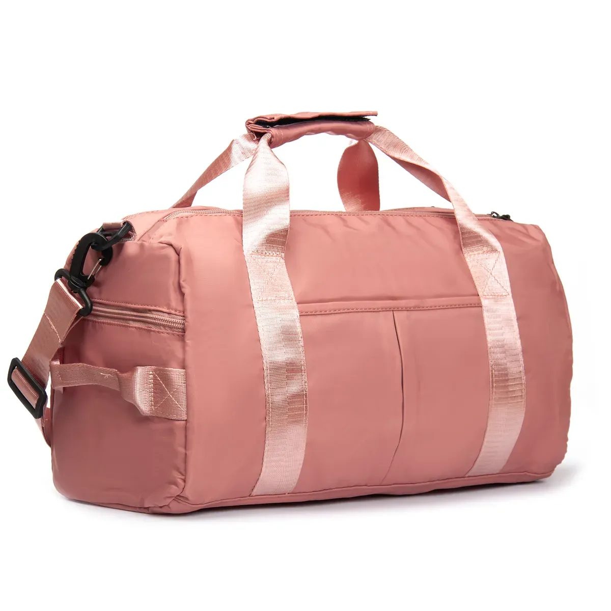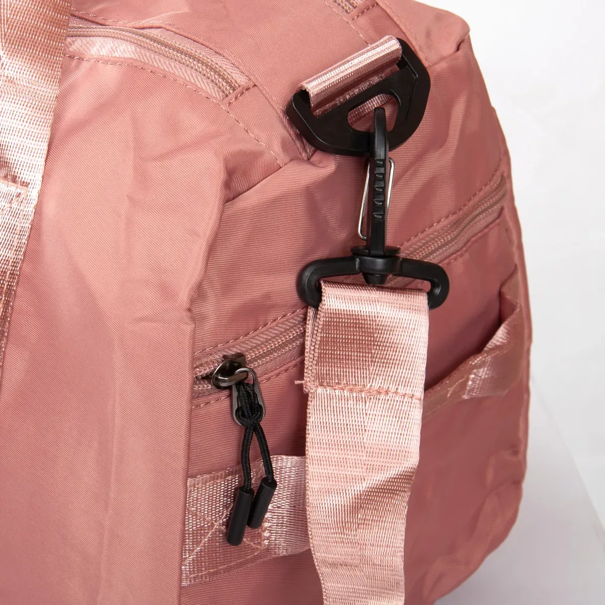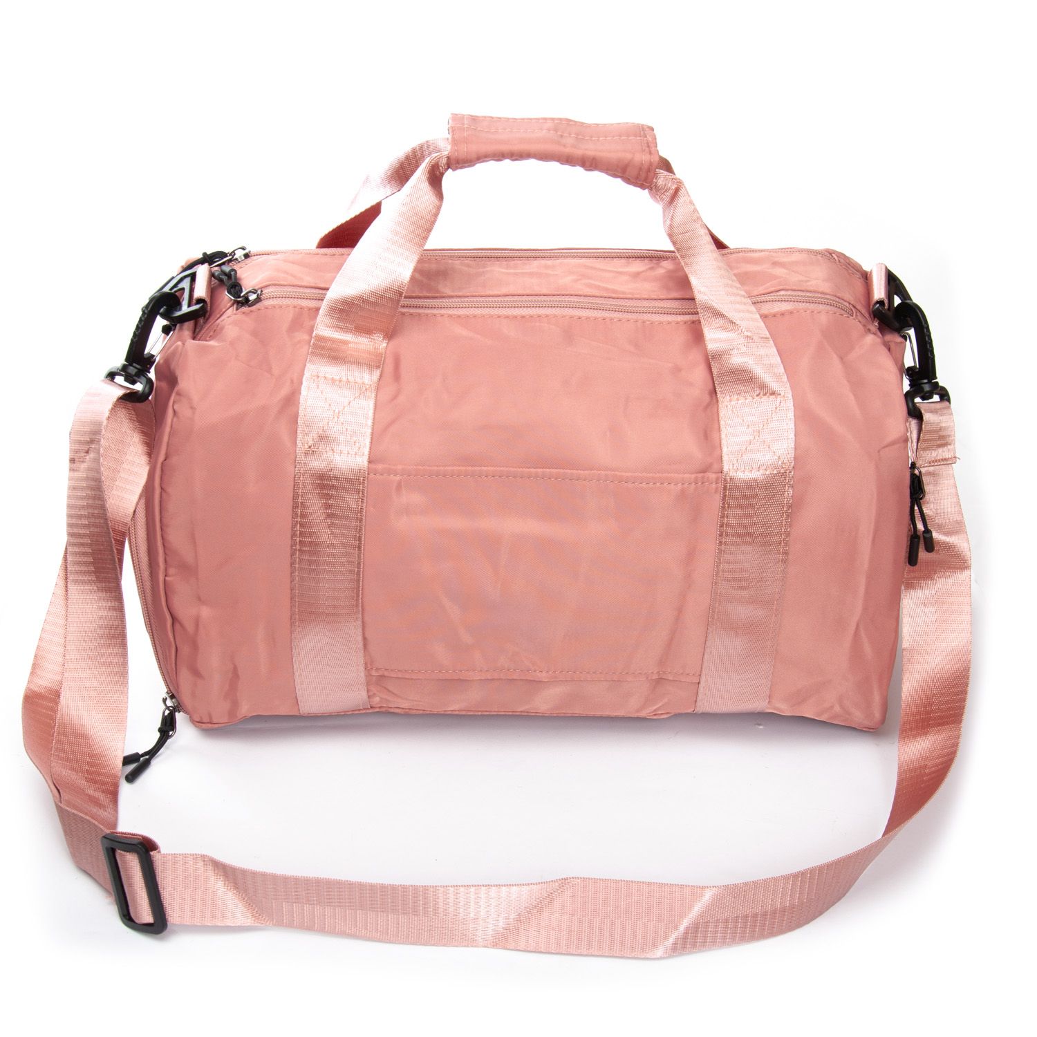 Одно отделение, закрывается на молнию. Внутри отделения есть большой боковой карман на молнии. Снаружи также расположен большой карман-отделение на молнии с герметичной подкладкой. На фасаде находится один открытый карман. На обратной стороне есть крепление на ручку чемодана. На торцах сумки есть два кармана на молнии, один из которых предназначен для обуви.