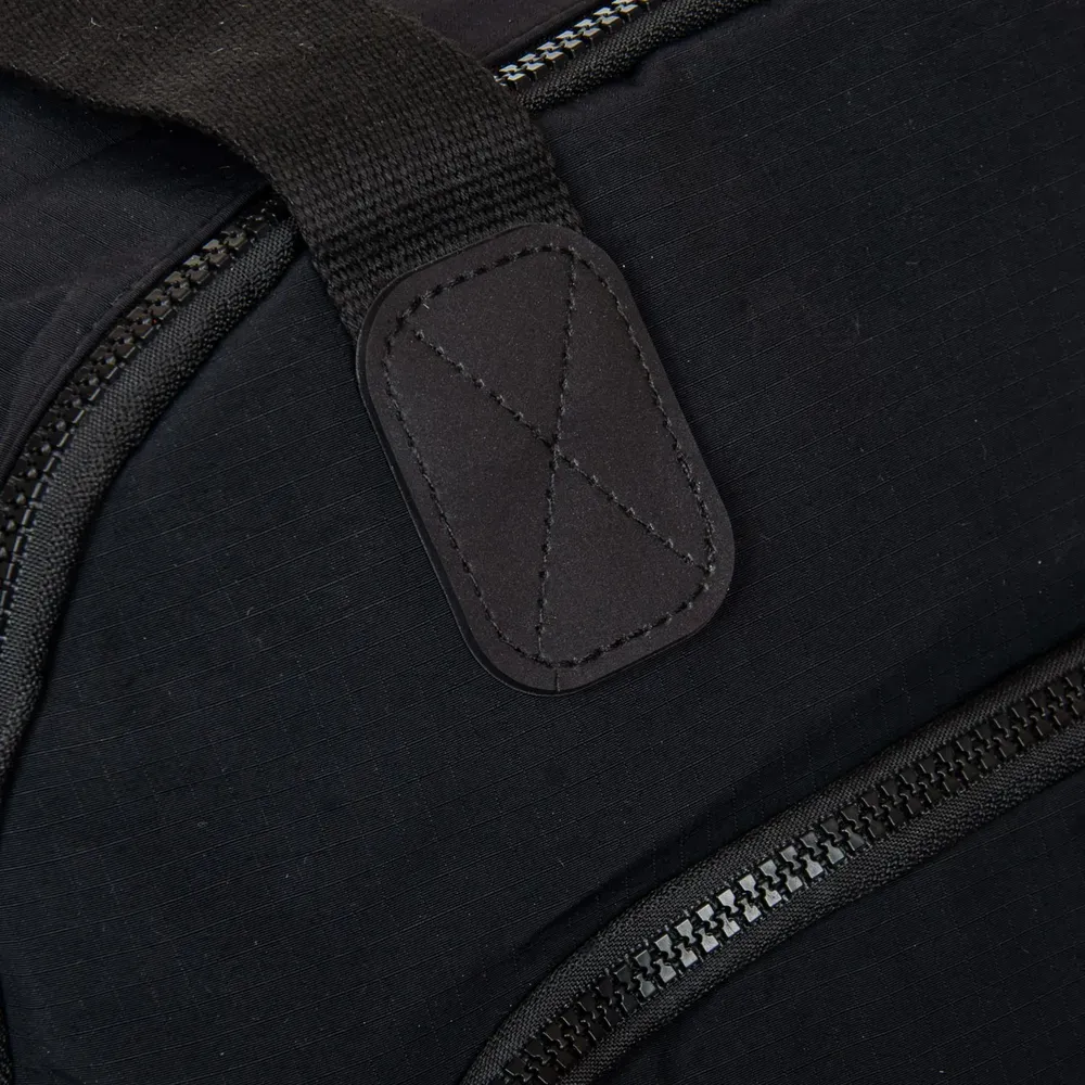 Одно отделение, закрывается на молнию. Внутри отделения есть большой карман на молнии и открытый карман. Снаружи сумки на торцах расположены два кармана для бутылок воды 0,5л. На фасаде и на обратной стороне находятся вместительные карманы на молнии.