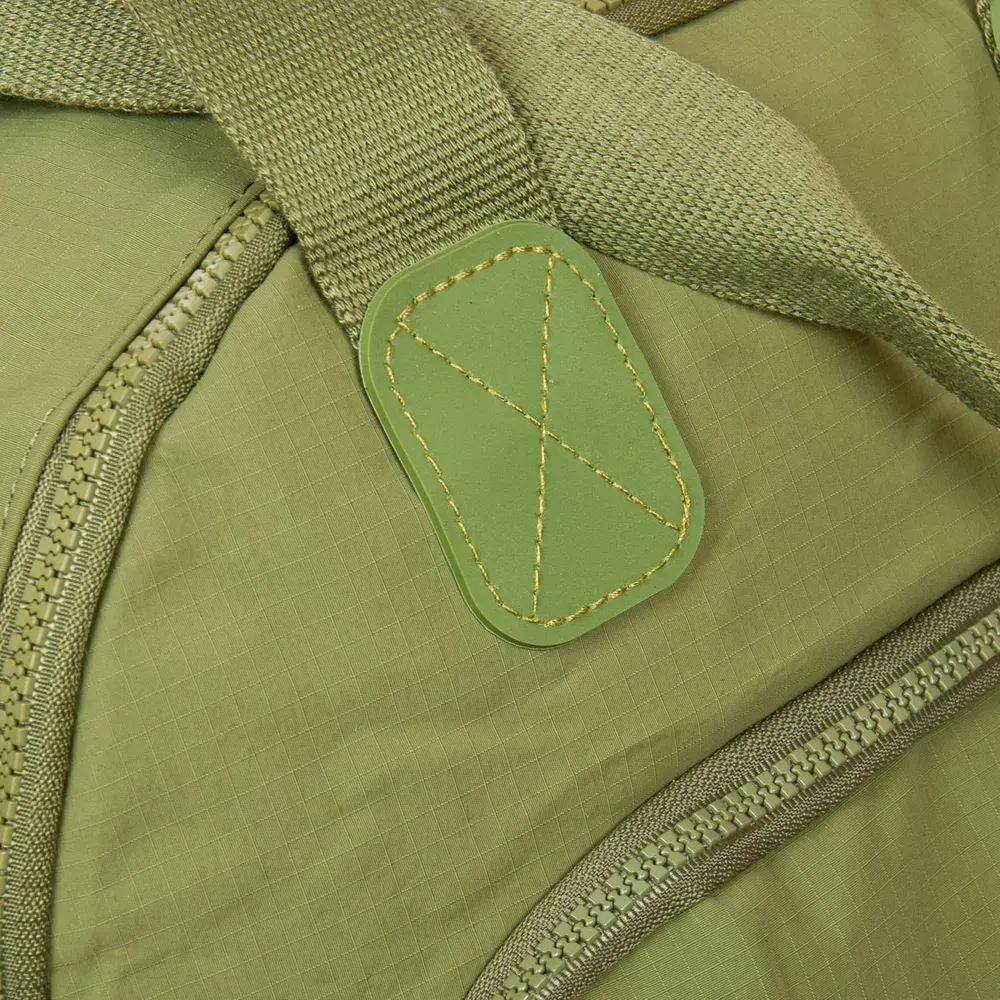 Одно отделение, закрывается на молнию. Внутри отделения есть большой карман на молнии и открытый карман. Снаружи сумки на торцах расположены два кармана для бутылок воды 0,5л. На фасаде и на обратной стороне находятся вместительные карманы на молнии.