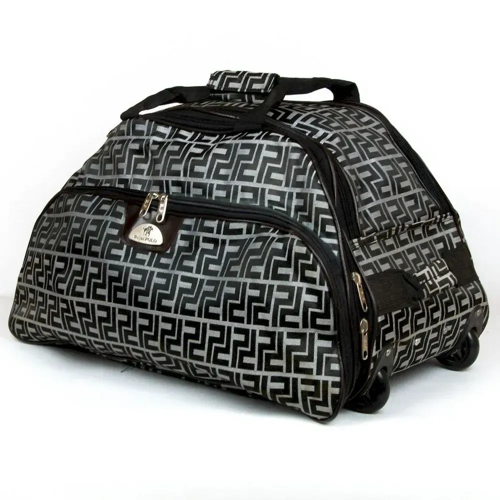 Дорожня сумка на двох колесах. Одне відділення закривається на блискавку (з петлями для замку). На фасаді дві кишені на блискавці. Висувна ручка оснащена фіксатором. Колеса поліуретанові