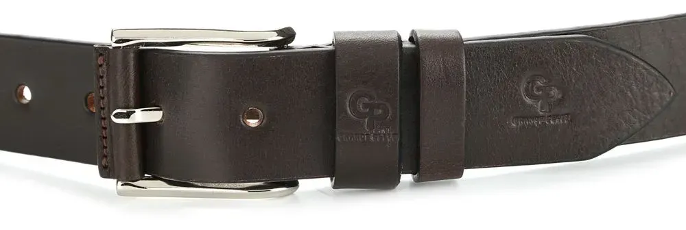 Ексклюзивний чоловічий джинсовий ремінь із натуральної шкіри GRANDE PELLE 00910 Коричневий