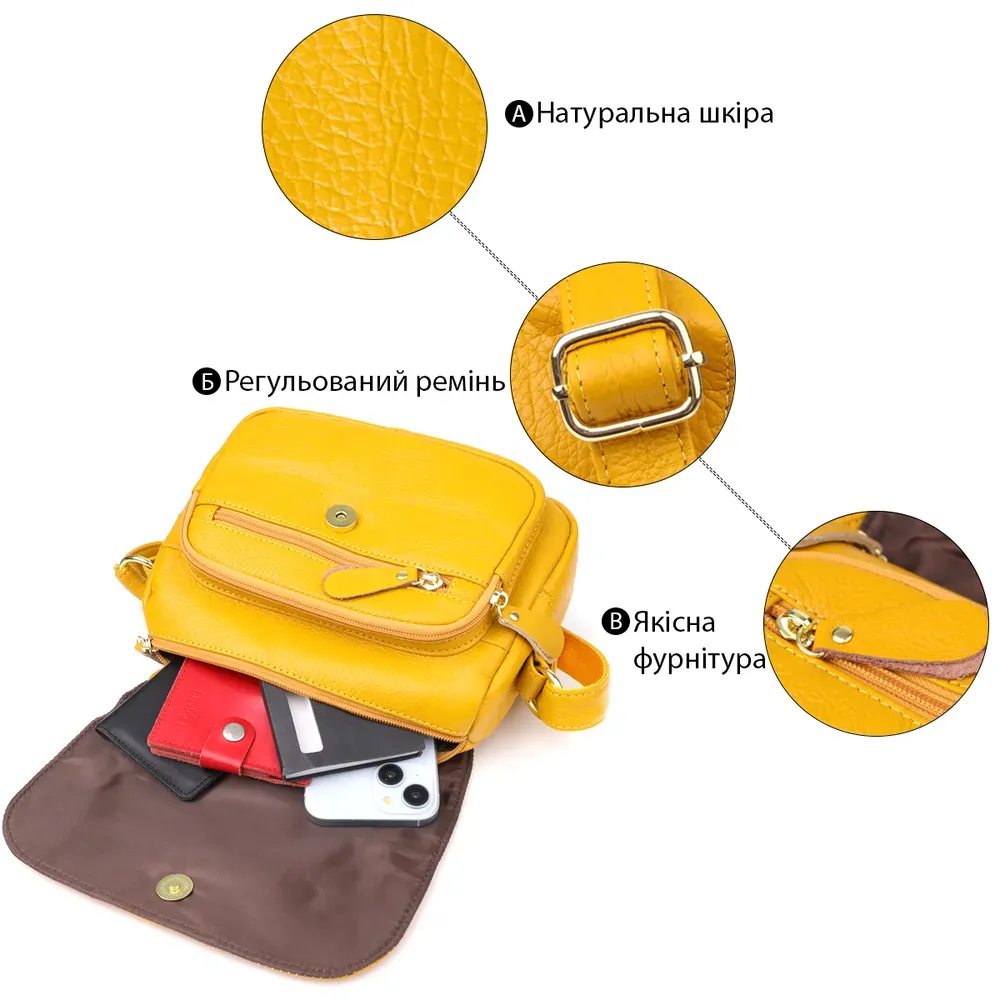 Елегантна шкіряна сумка для жінок на день Vintage 22969 Жовтий