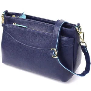 Жіноча шкіряна сумка синього кольору з формостійким дном – елегантність та функціональність в одному аксесуарі. Ця витончена модель виконана з натуральної шкіри глибокого синього відтінку, який надає образу витонченості та спокою. Синій колір універсальний та підходить як для ділових, так і для повсякденних образів, роблячи сумку незамінним аксесуаром у гардеробі. Формостійке дно гарантує збереження чіткої та акуратної форми сумки, що підкреслює її якісне виконання та практичність.