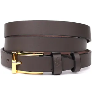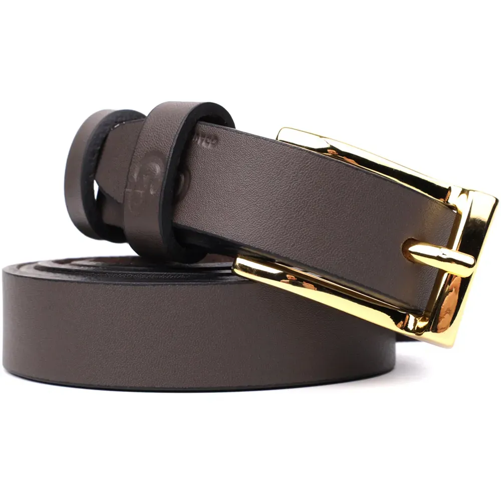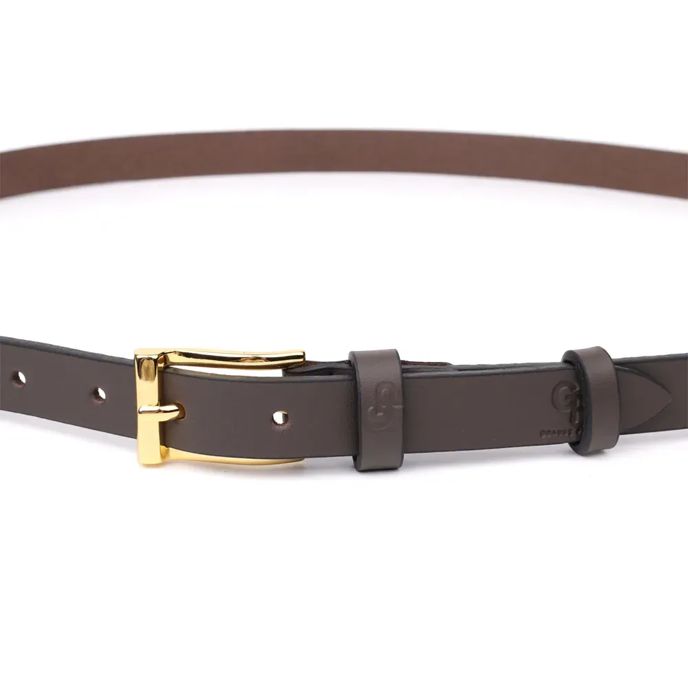 Пряжка прямокутної форми у кольорі під жовте золото гармонійно контрастує із глибоким коричневим відтінком шкіри, створюючи стриманий, але виразний акцент. Тиснений логотип бренду підтверджує оригінальність та преміальну якість виробу.