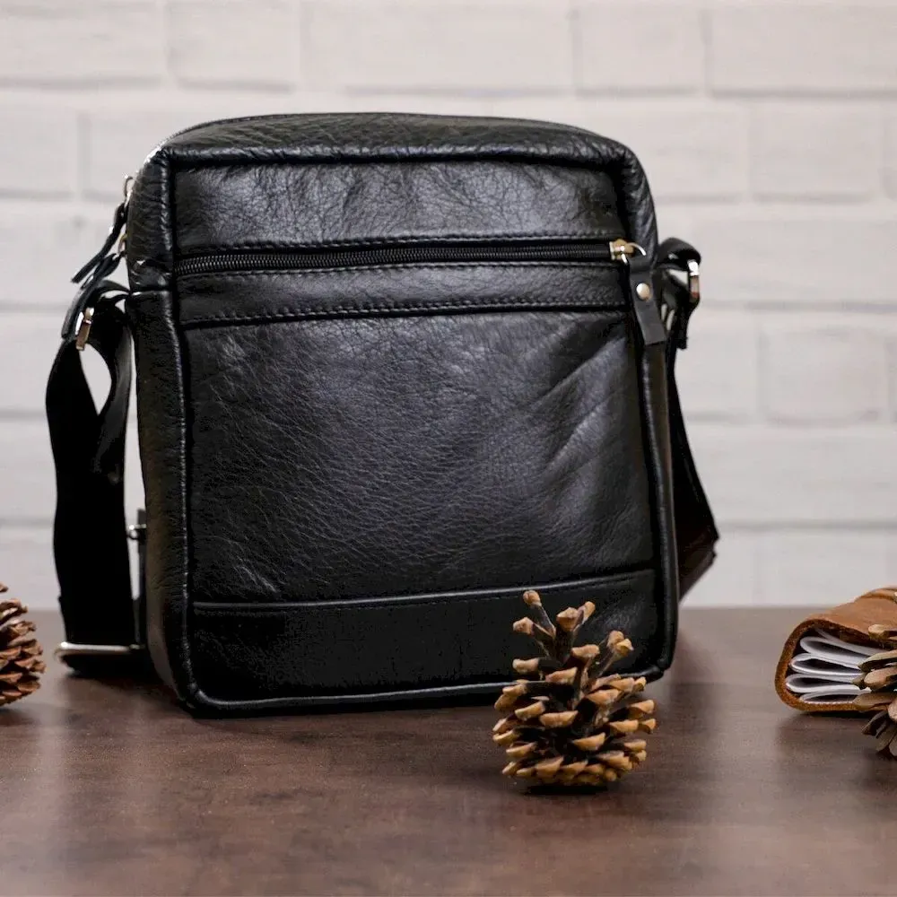 Великолепная мужская сумка вертикального формата, изготовленная из натуральной кожи черного цвета. Она отлично дополнит как деловой, так и повседневный стиль и станет Вашим любимым аксессуаром, благодаря своей практичности.