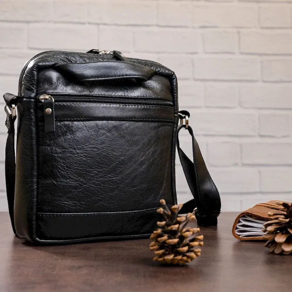 Елітна шкіряна чоловіча сумка SHVIGEL 00791 Чорна