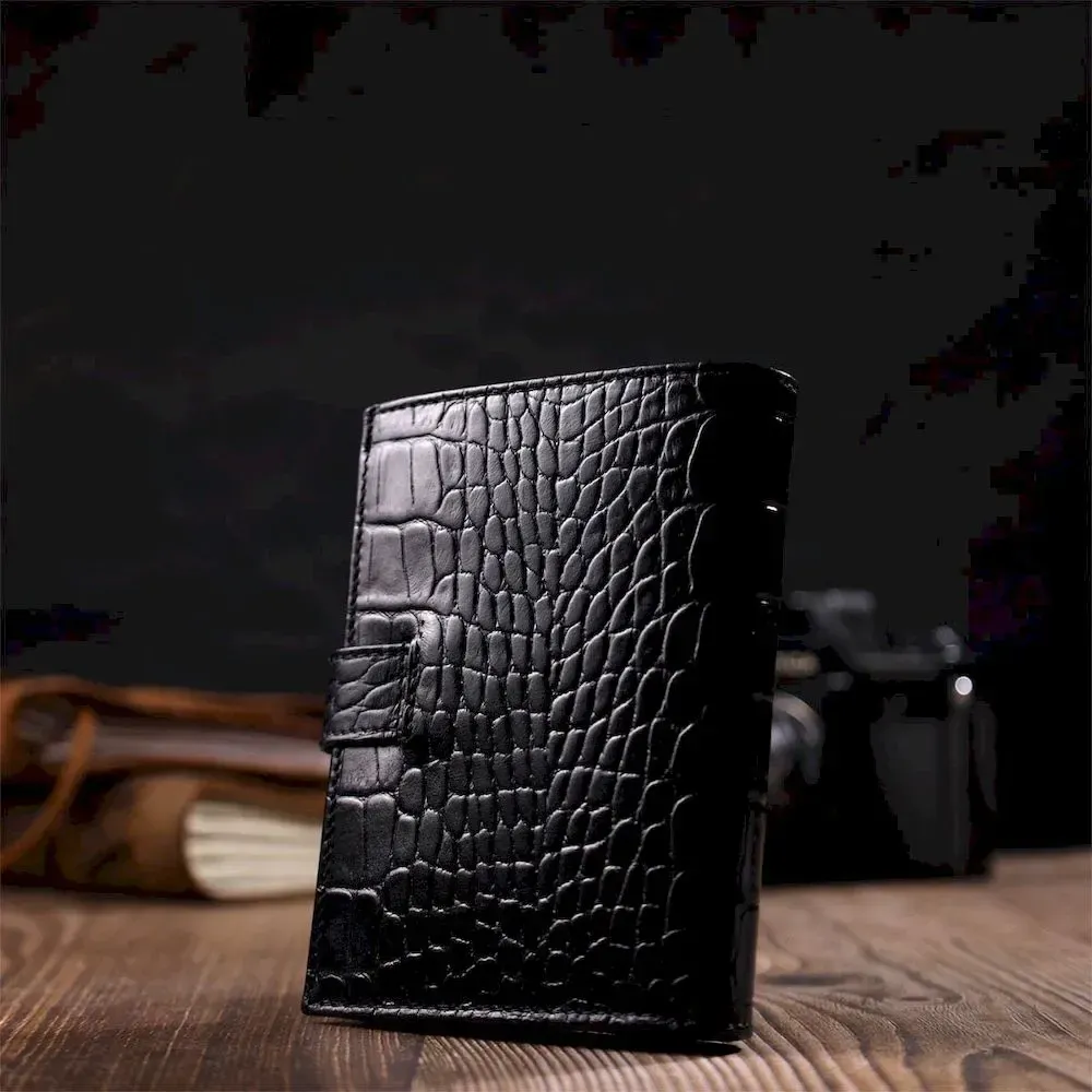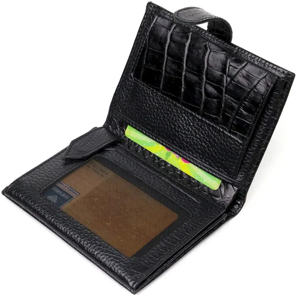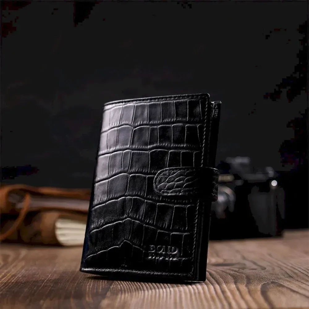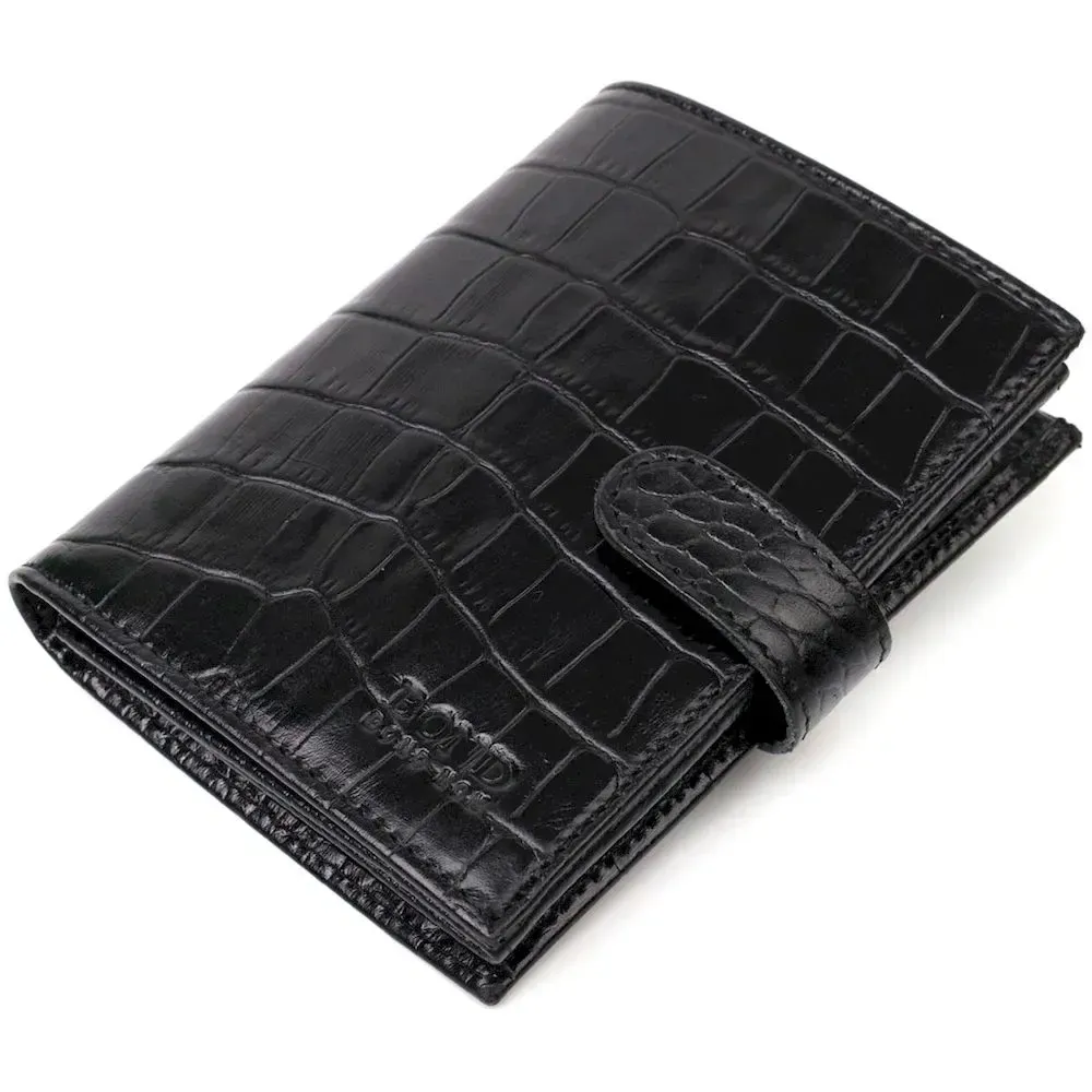 Фактурне портмоне для чоловіків з натуральної шкіри з тисненням під крокодила BOND 22057 Чорний