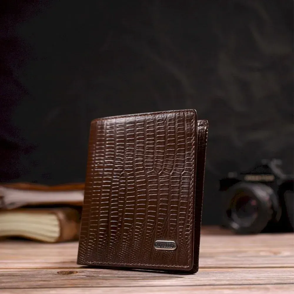 Фактурний гаманець для чоловіків з натуральної шкіри з тисненням CANPELLINI 21927 Коричневий