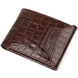 Фактурний чоловічий гаманець з натуральної шкіри з тисненням під крокодила з цікавою застібкою BOND 21990 Коричневий