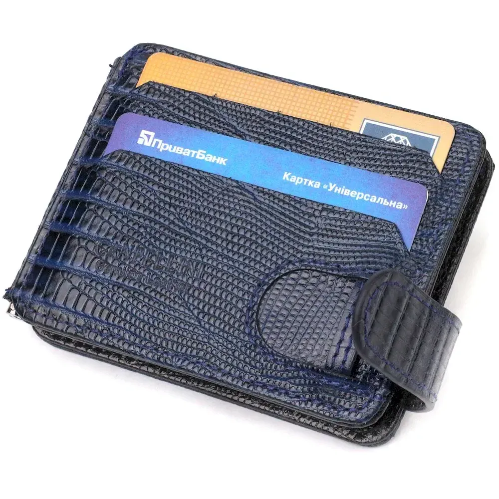 Фактурний чоловічий затискач для грошей із натуральної шкіри з тисненням CANPELLINI 21942 Синій