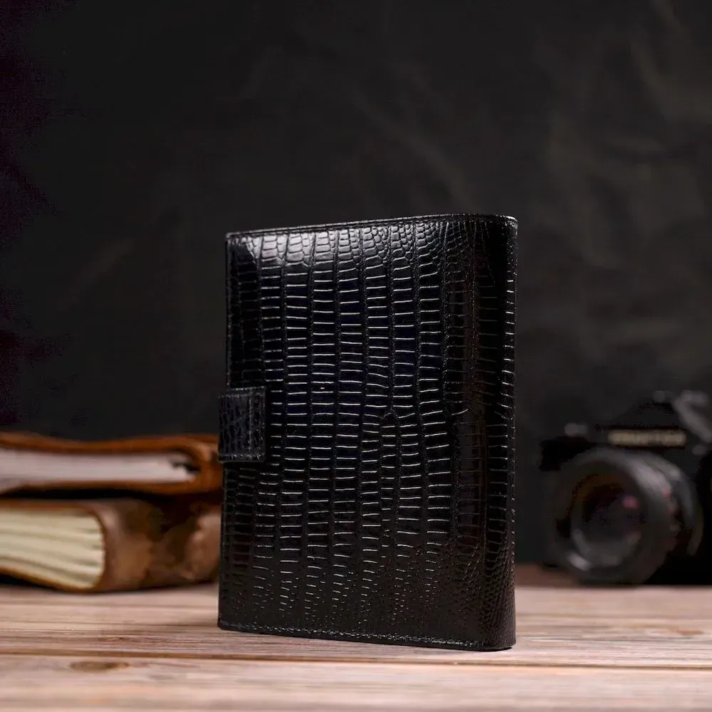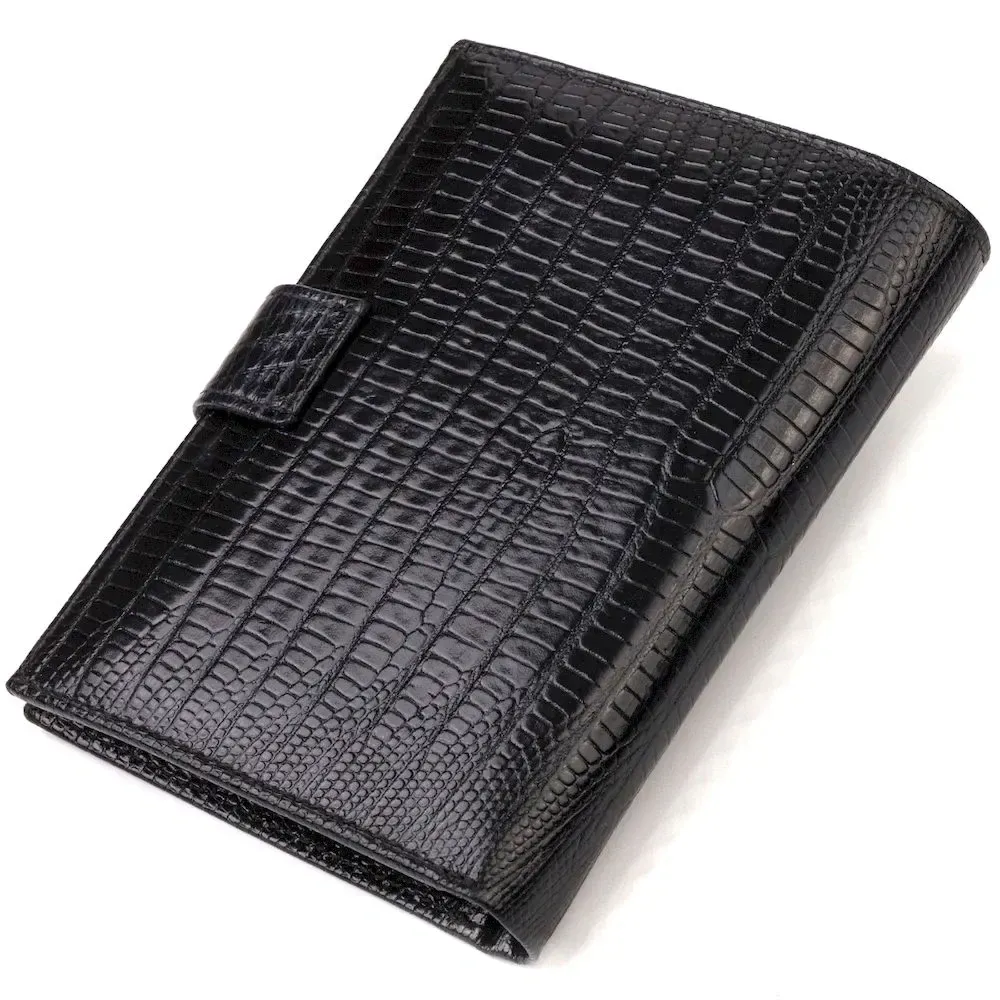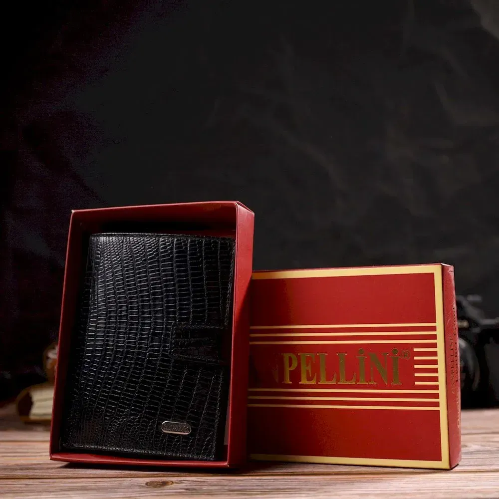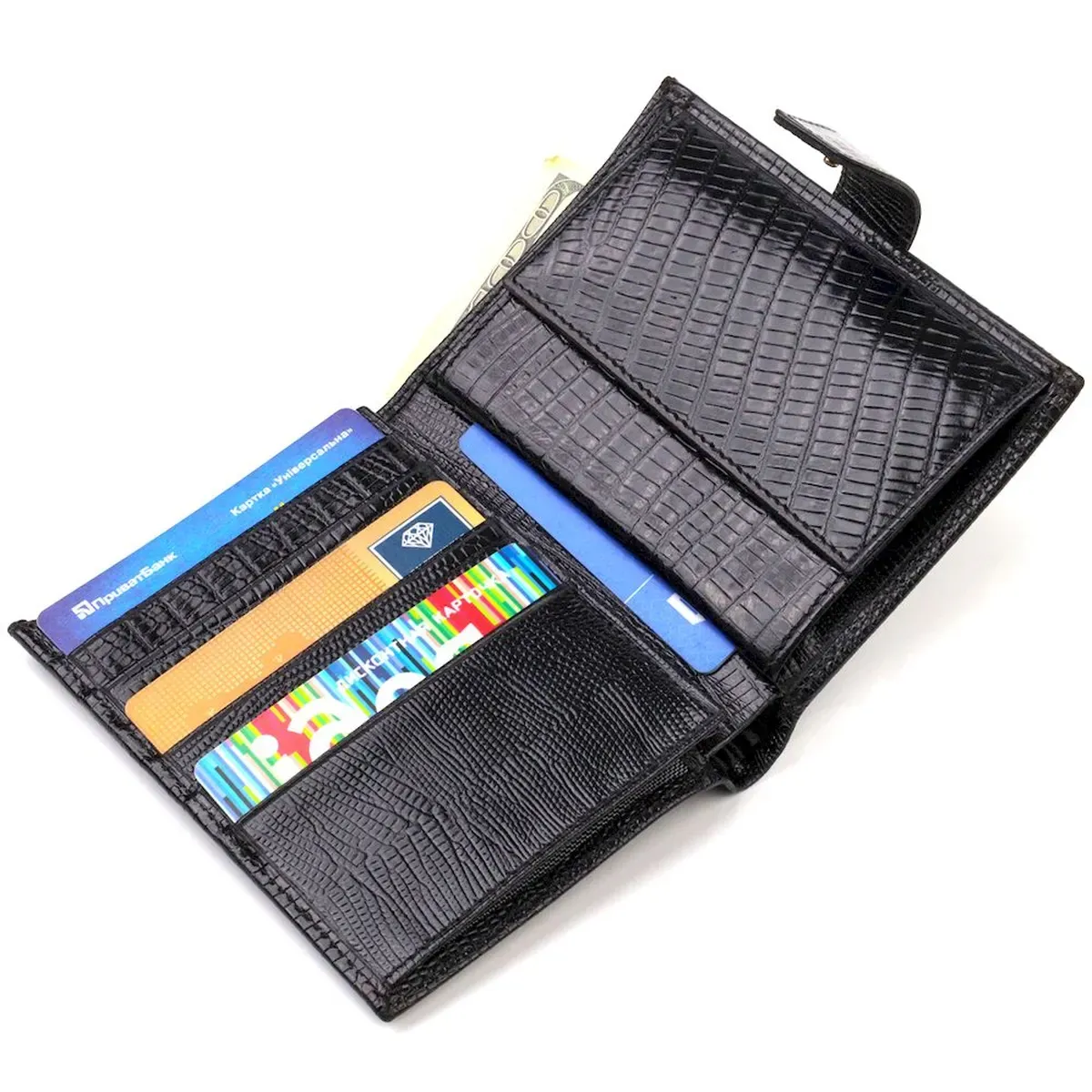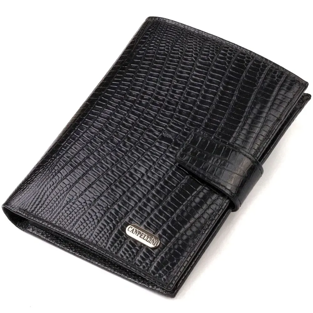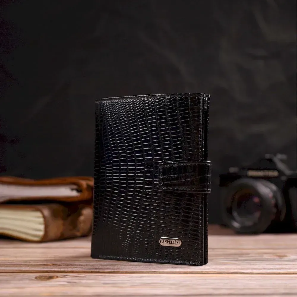 Фактурний вертикальний чоловічий гаманець середнього розміру з натуральної шкіри з тисненням CANPELLINI 21859 Чорний