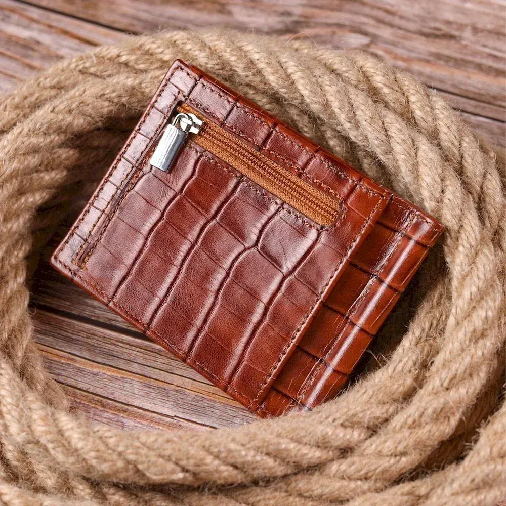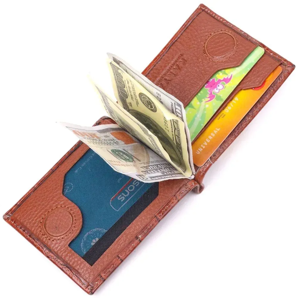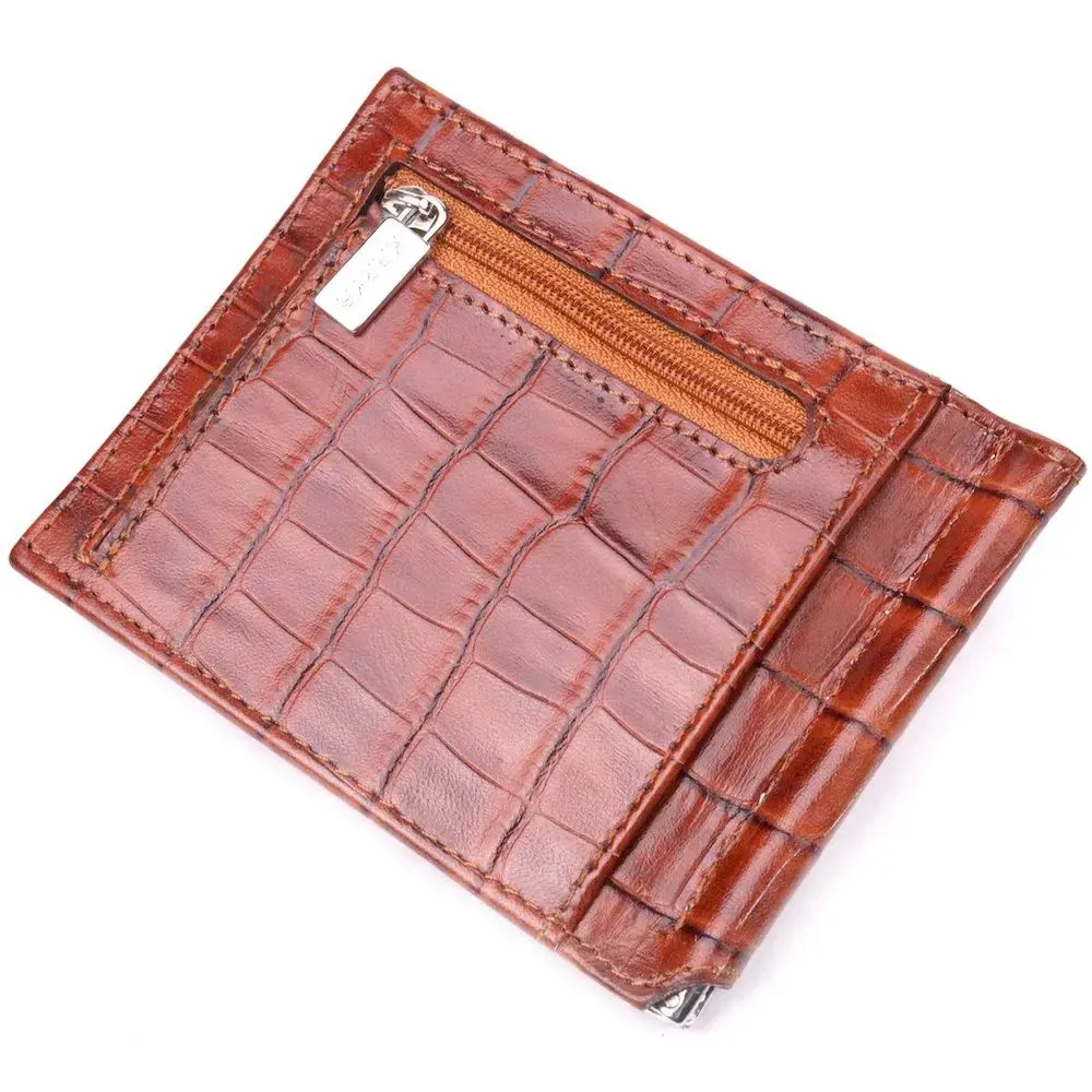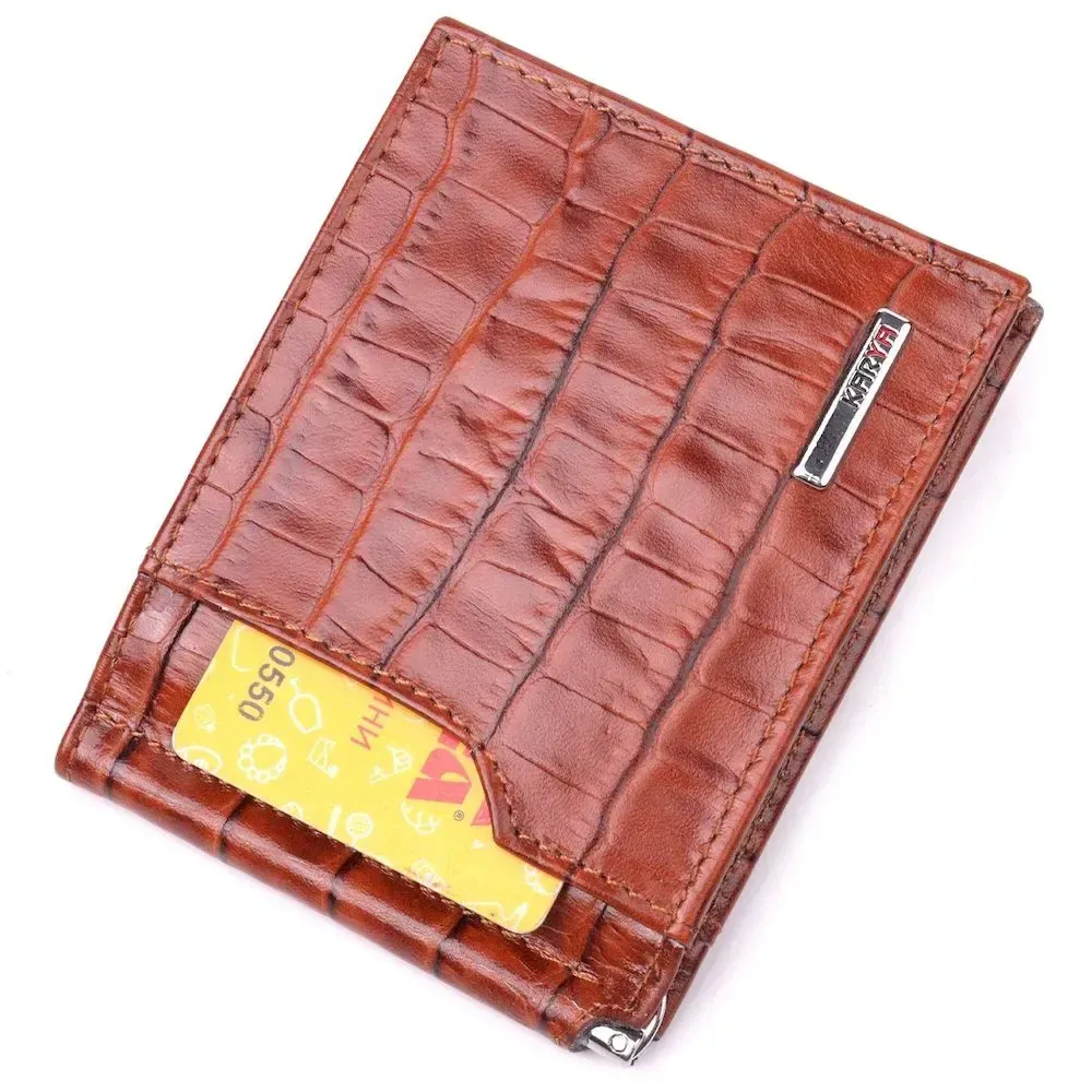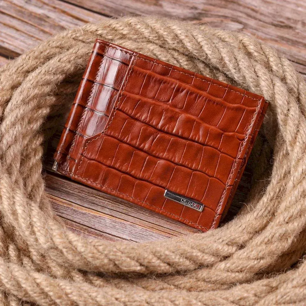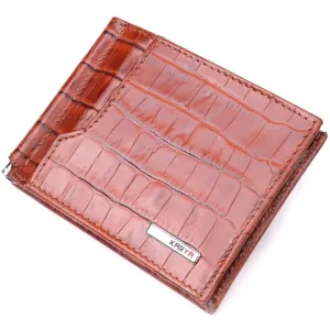 Фактурний затискач для чоловіків з натуральної шкіри з тисненням під крокодила KARYA 21418 Рудий