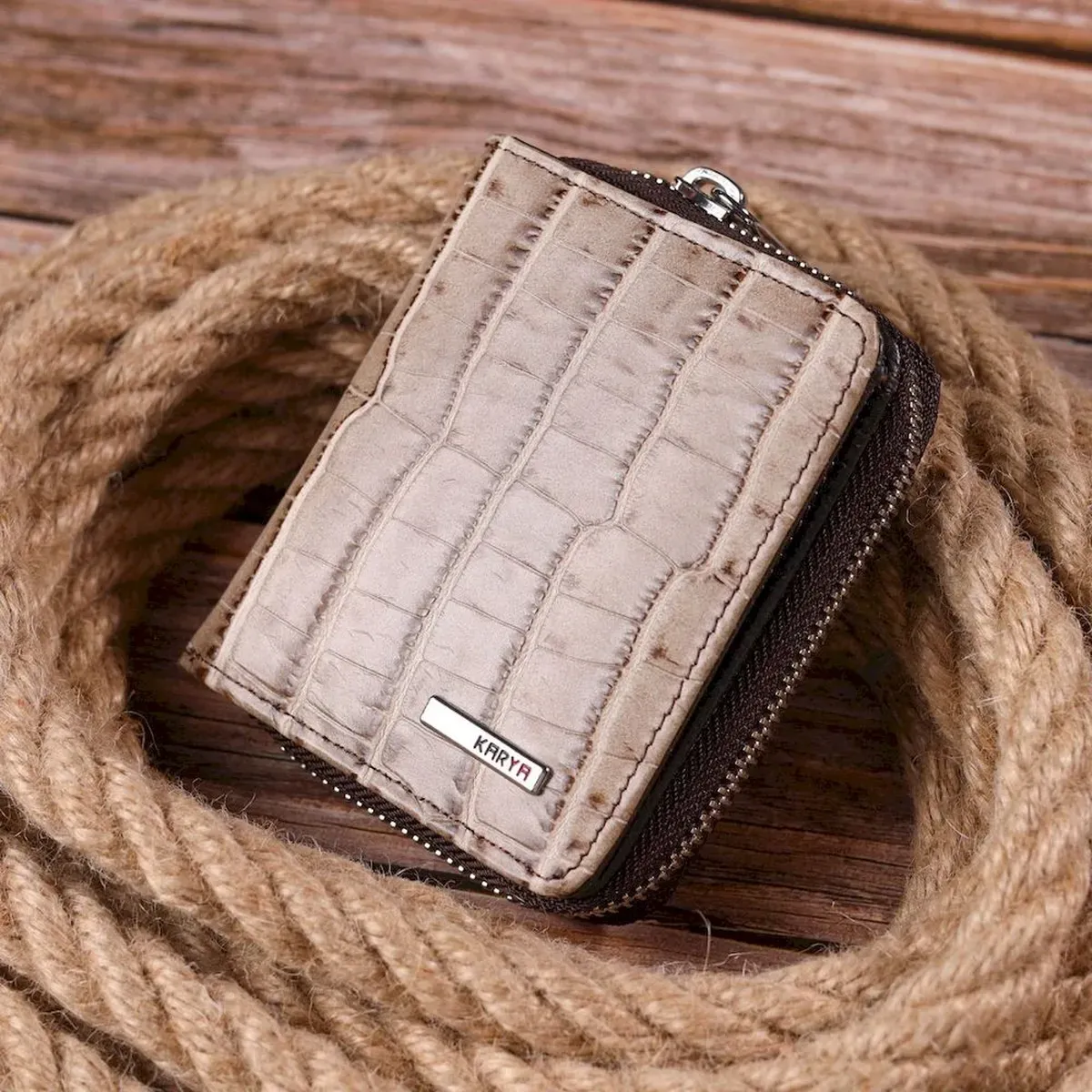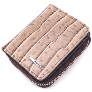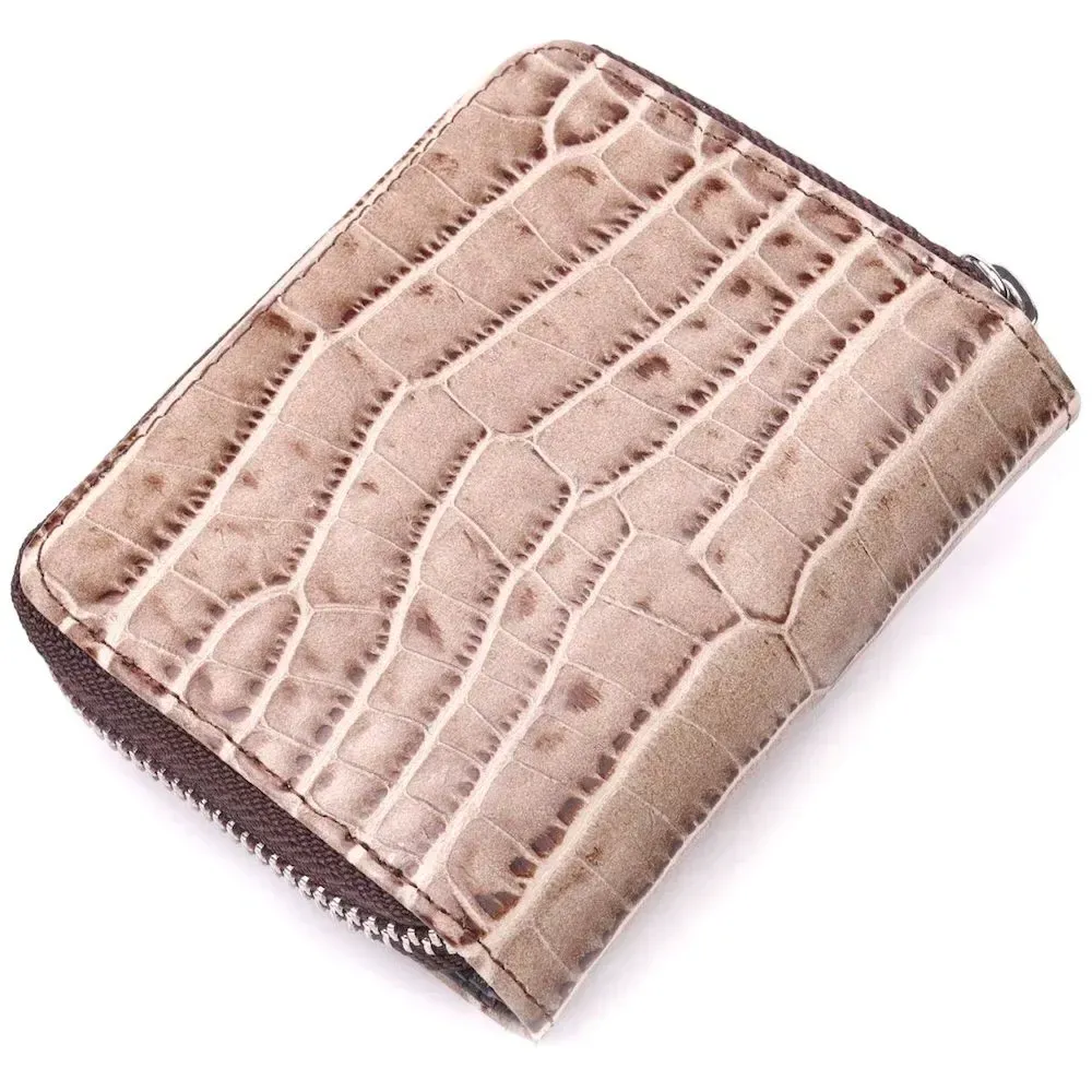 Фактурний жіночий гаманець із монетницею з натуральної шкіри з тисненням під крокодила KARYA 21413 Бежевий