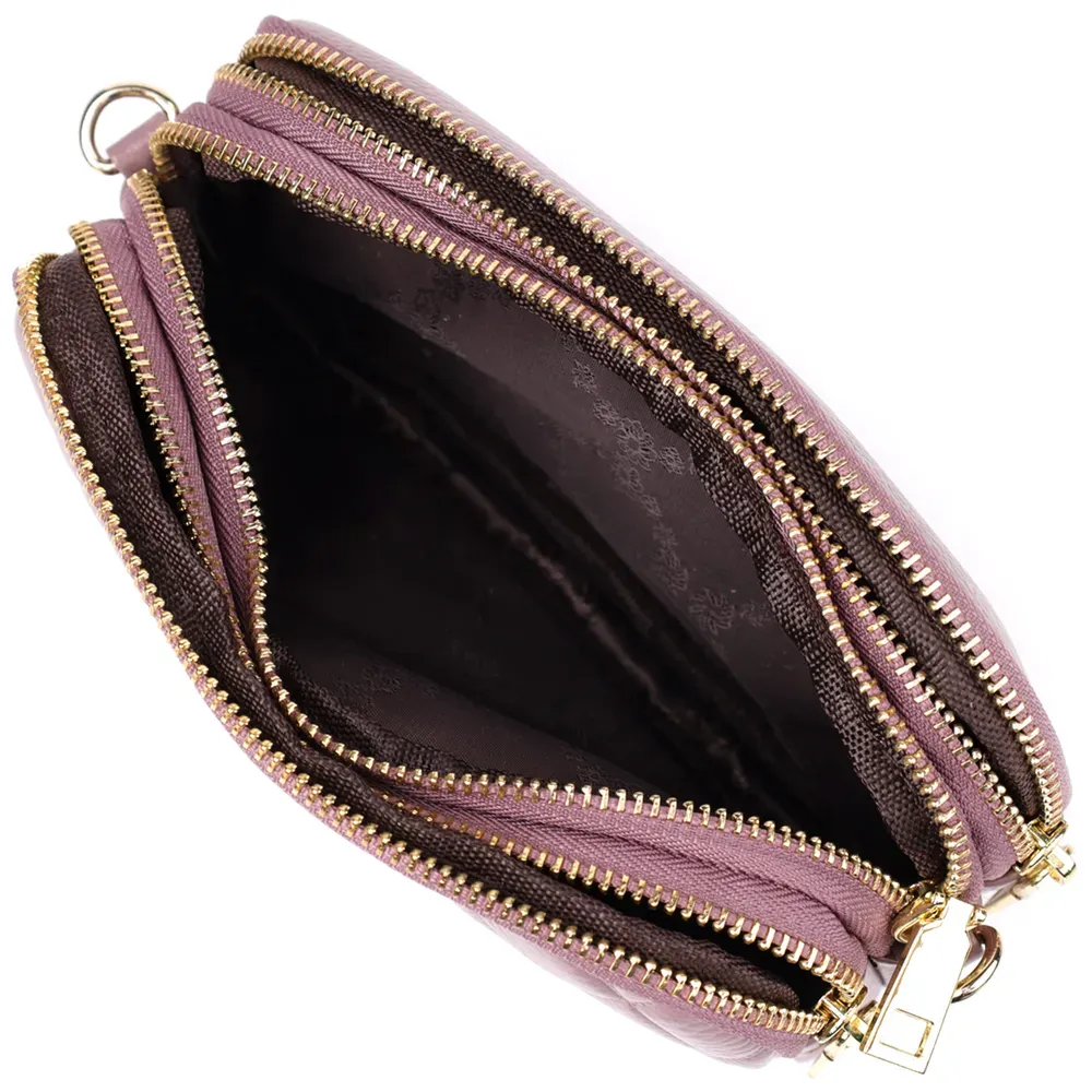 Функціональна жіноча сумка з натуральної шкіри з трьома секціями Vintage 22891 Пурпурний