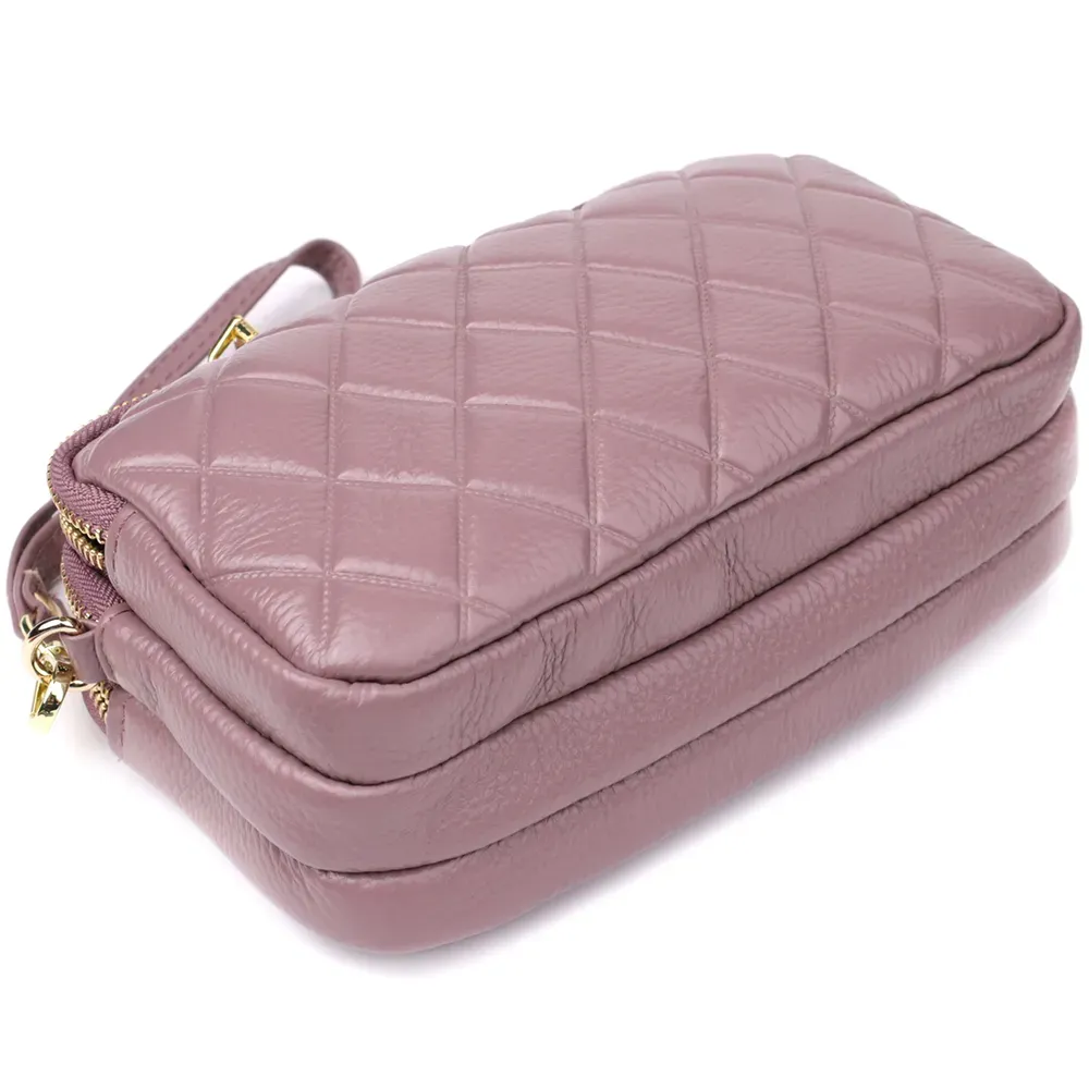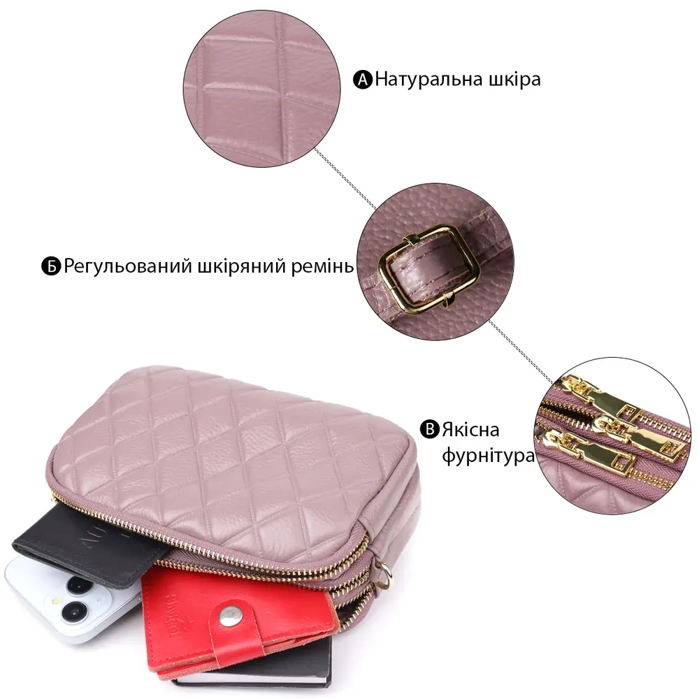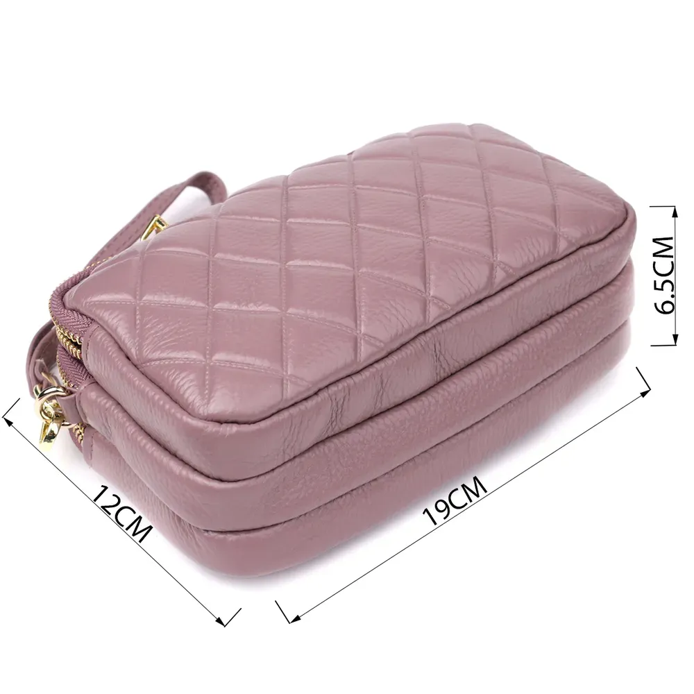 Ця шкіряна стьобана сумка на три відділення - ідеальний вибір для жінок, які цінують комфорт, порядок та бездоганний зовнішній вигляд у кожному образі.