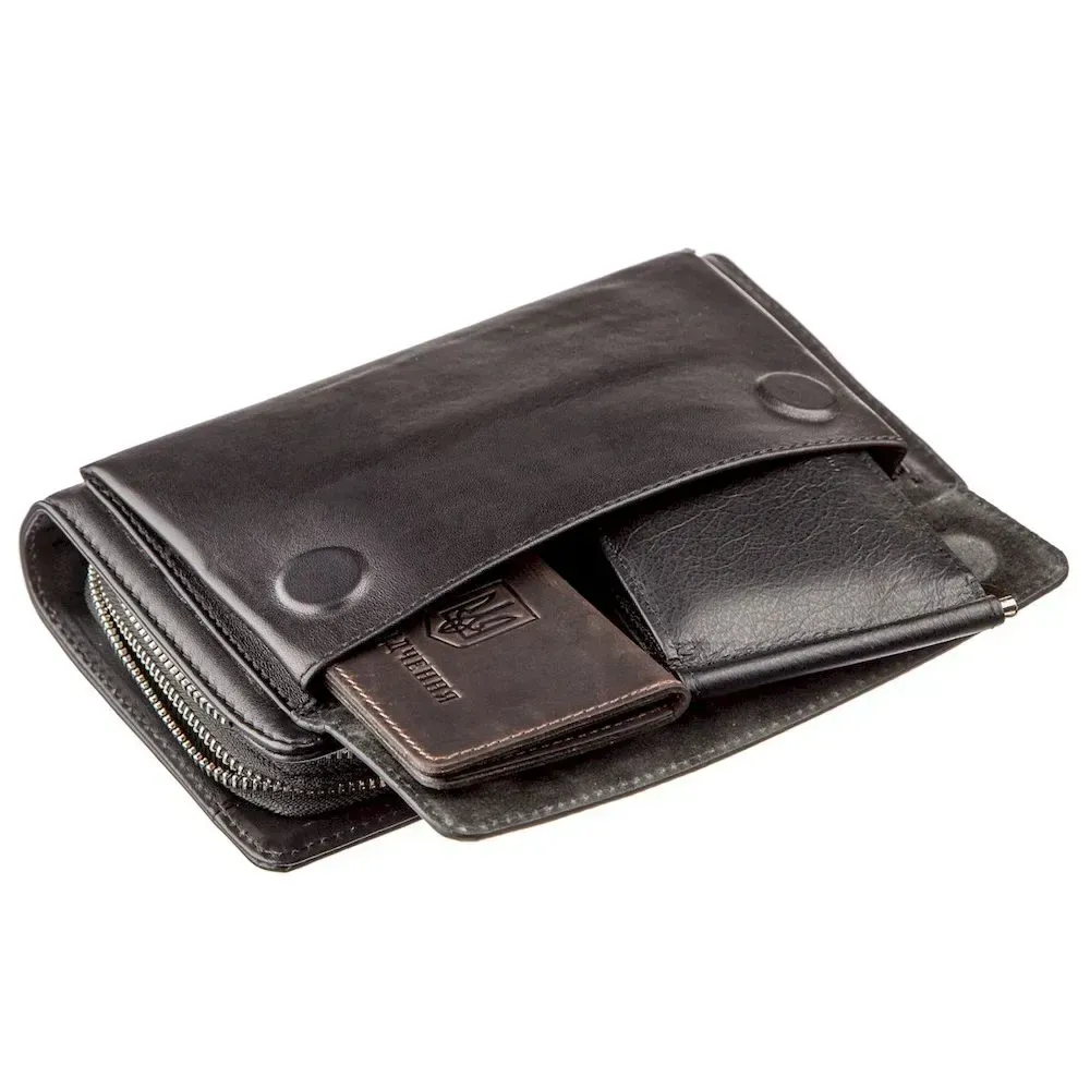Елегантний та добротний клатч із щільної натуральної шкіри турецької якості. Всередині аксесуар виконаний із поєднання міцного текстилю зі шкіри. Ви можете носити клатч як у руці, так і на зап'ясті. Клатч зручно сидить у руці, не займає багато мети і при цьому має широкий функціонал. Аксесуар упакований у фірмовий чохол. Буде ідеальним подарунком для будь-якого чоловіка. За бажанням ви можете придбати подарункову упаковку в нашому магазині та додати інтриги у свій подарунок.