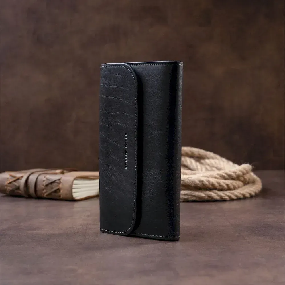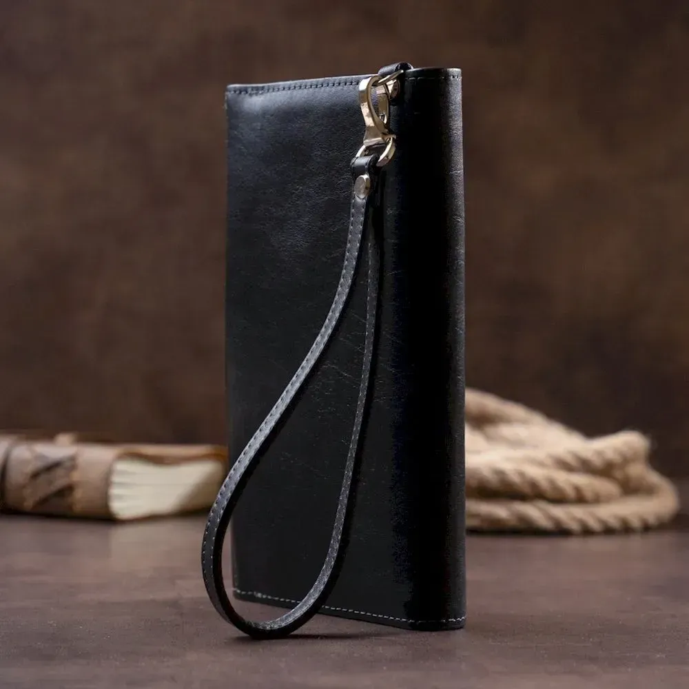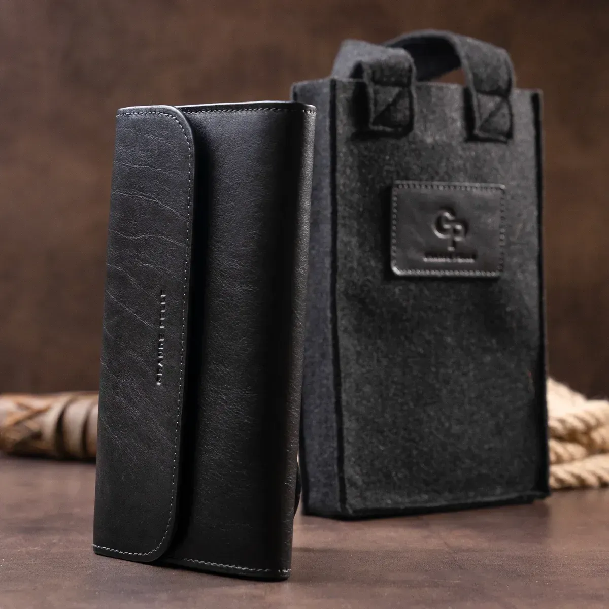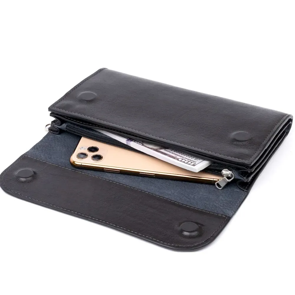 Горизонтальна барсетка-клатч чоловіча в гладкій шкірі GRANDE PELLE 11298 Чорна
