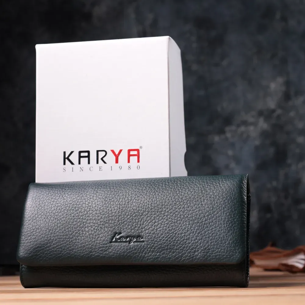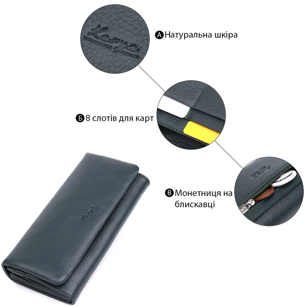 Горизонтальний жіночий гаманець з натуральної шкіри KARYA 22852 Зелений