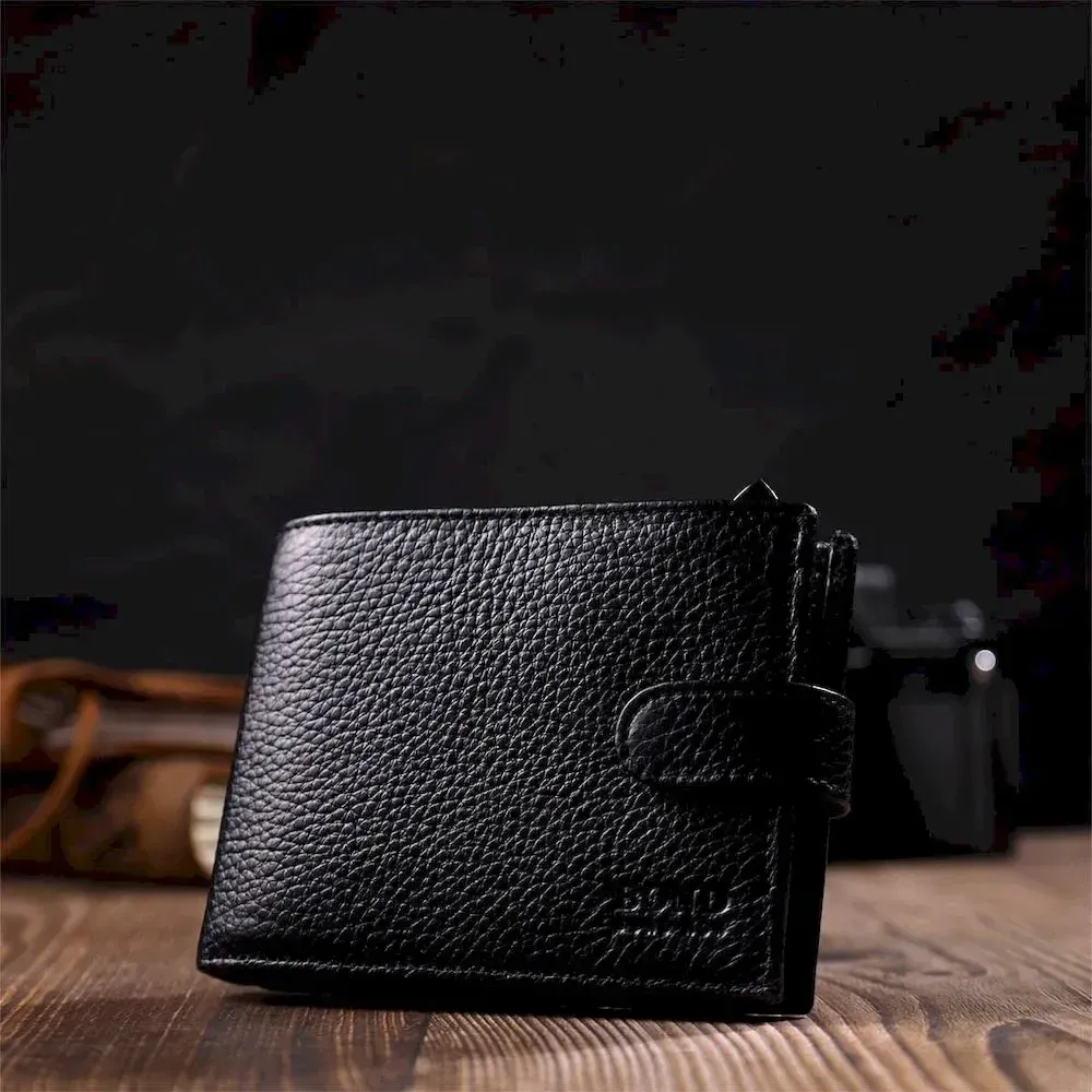 Горизонтальне портмоне для чоловіків з натуральної зернистої шкіри BOND 22059 Чорний