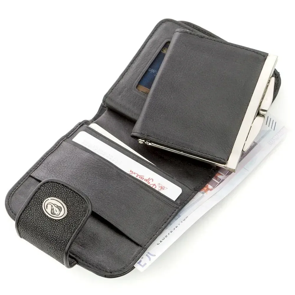 Горизонтальний гаманець STINGRAY LEATHER 18561 із натуральної шкіри морського ската Чорний