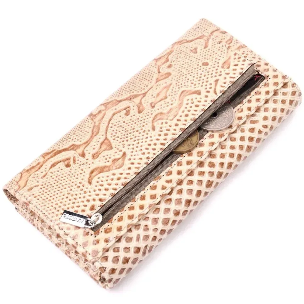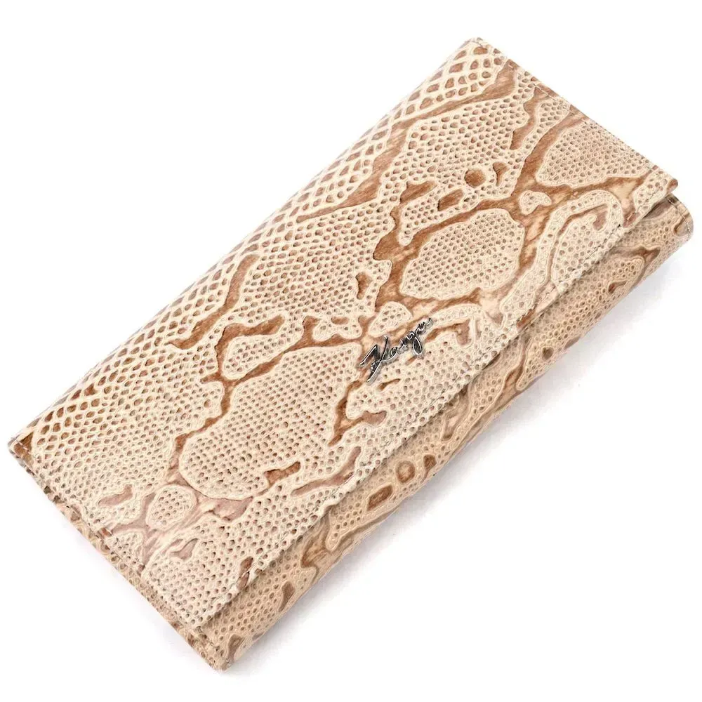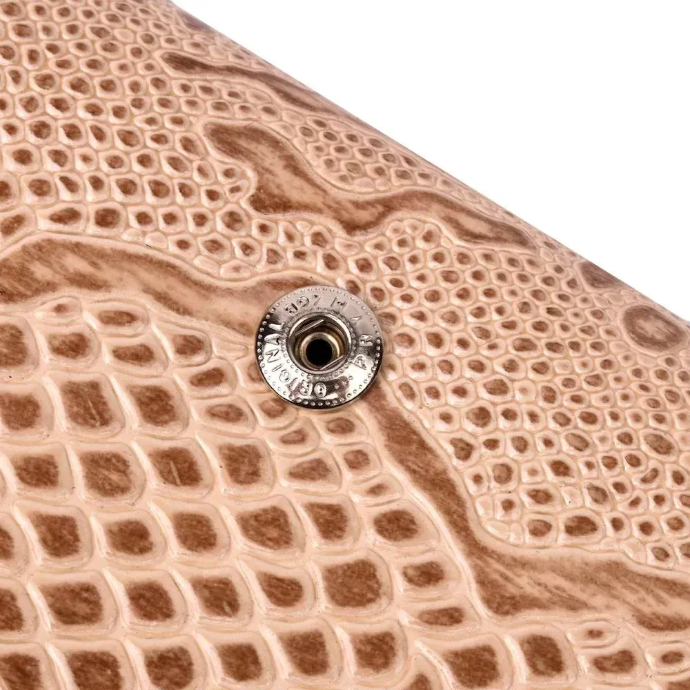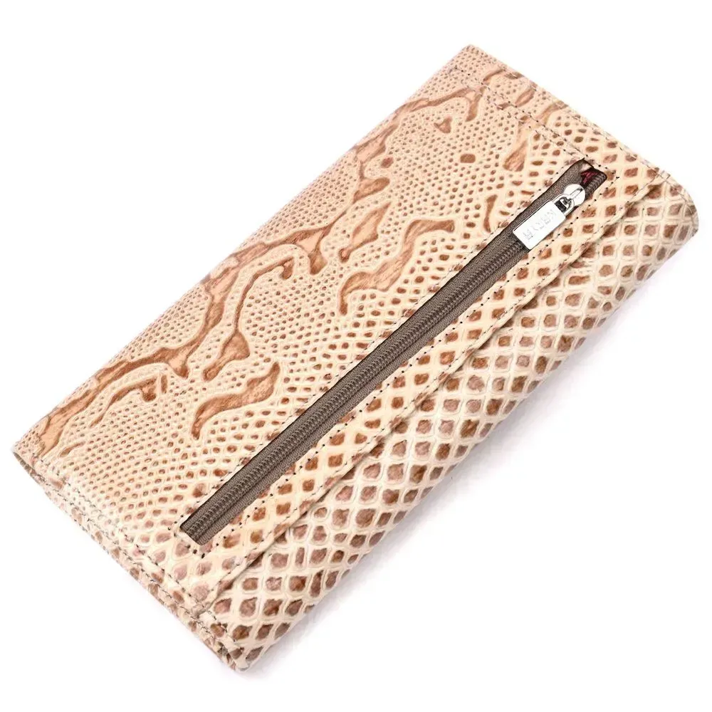 Горизонтальний лакований гаманець із фактурної натуральної шкіри KARYA 21172 Бежевий