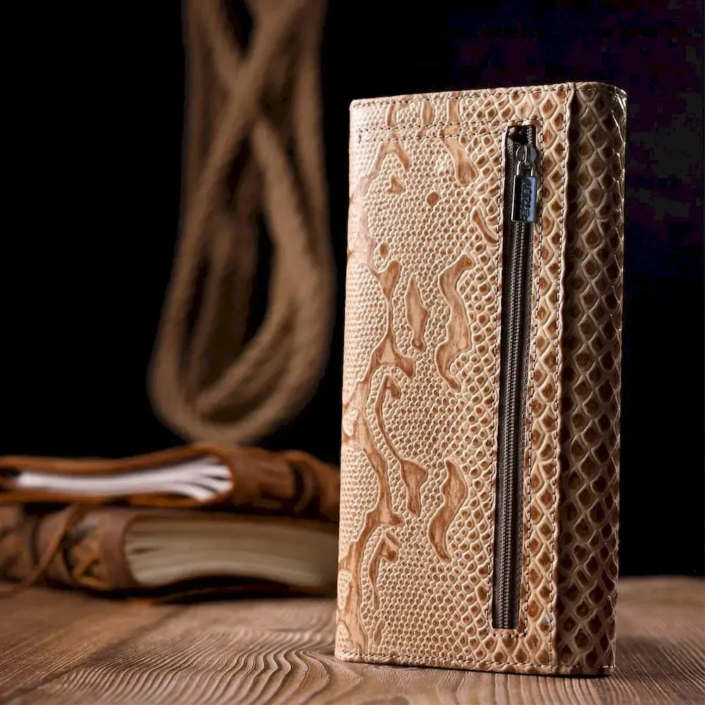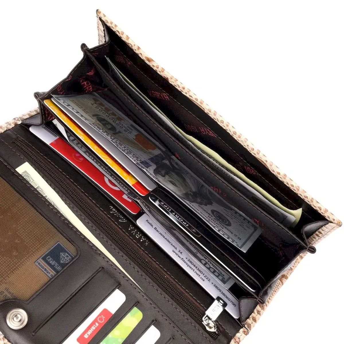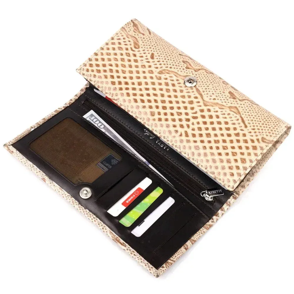 Горизонтальний лакований гаманець із фактурної натуральної шкіри KARYA 21172 Бежевий