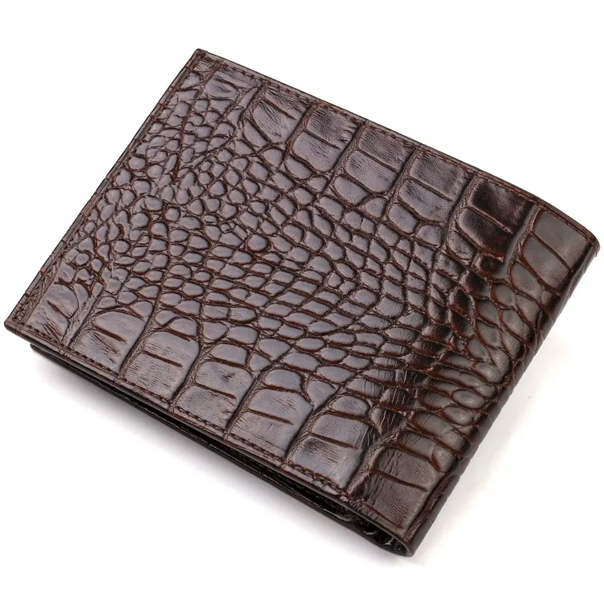 Горизонтальний чоловічий гаманець середнього розміру з натуральної шкіри з тисненням під крокодила CANPELLINI 21860 Коричневий