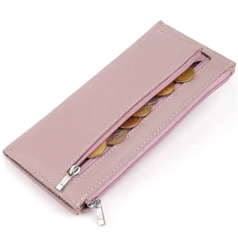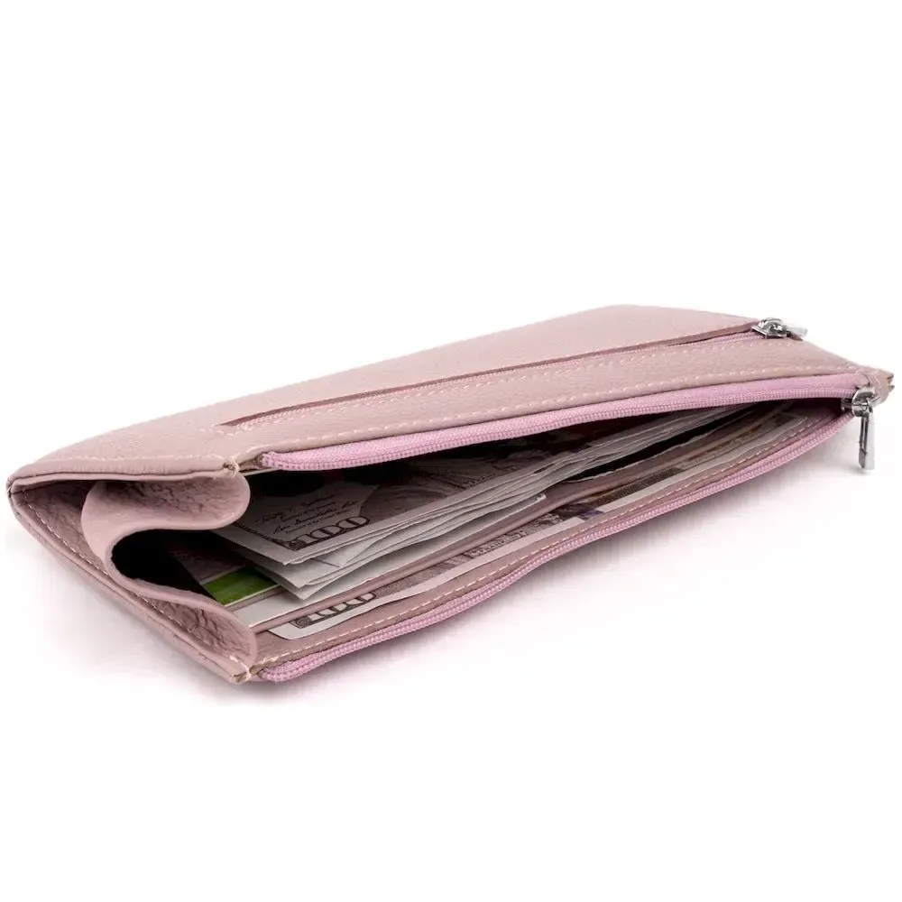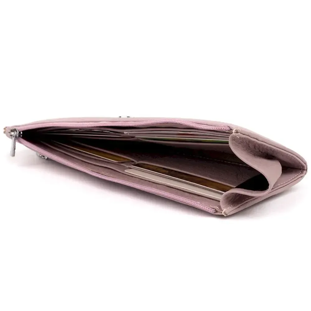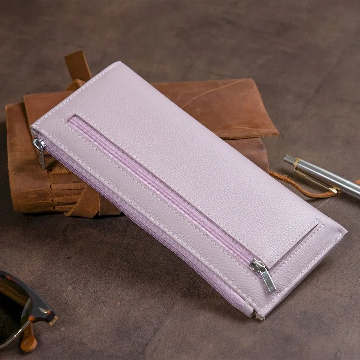 Якісний тонкий гаманець унісекс на блискавці. Колір гаманця оригінальний та неповторний - лілові. Шкіра має природну структуру. Ми впевнені, що з покупкою нового гаманця настануть приємні зміни в житті. Виріб підійде для дівчат, які полюбляють пастельні тони. Гаманець у такому кольорі додасть вам легкості та стильності. Усередині гаманця просторі кишені для зручного розміщення купюр, монет і кредиток. У поєднанні з якісною фурнітурою виріб прослужить порівняно довго. Підійде гаманець як подарунок для дівчини. Гаманець упакований у фірмову коробку від виробника.