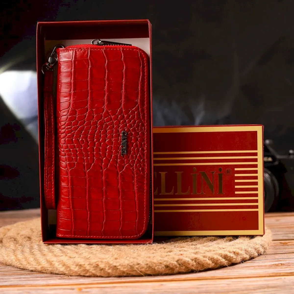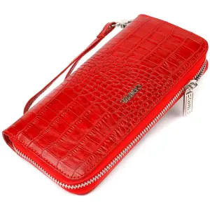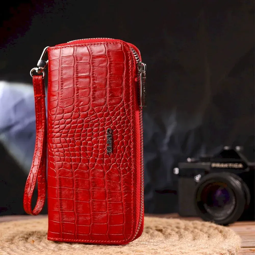 Горизонтальний яскравий гаманець для жінок із натуральної фактурної шкіри під крокодила CANPELLINI 21621 Червоний