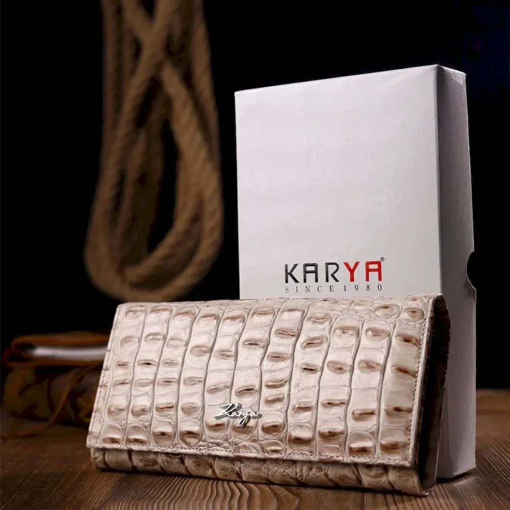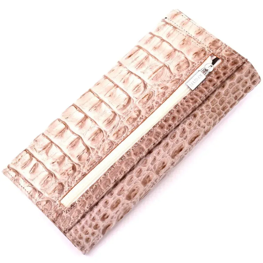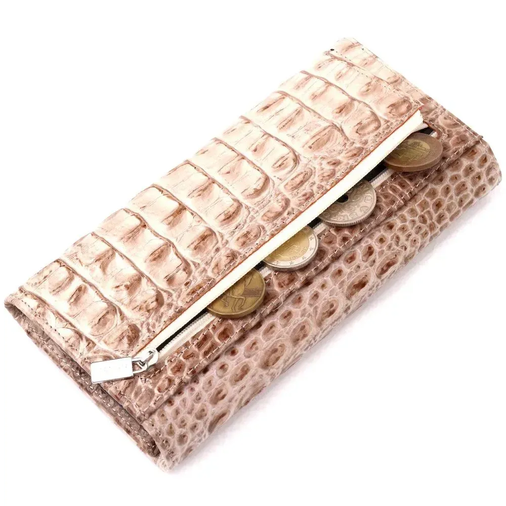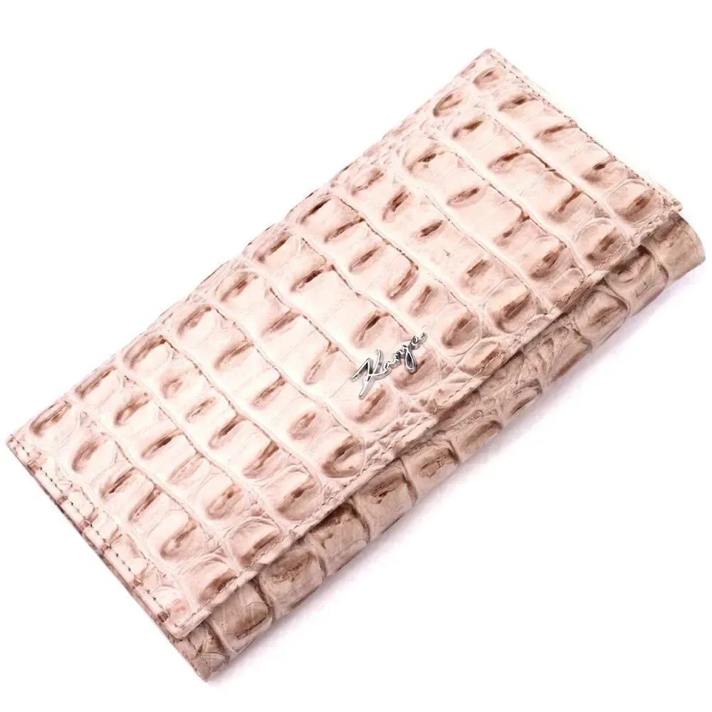 Жіночий гаманець з натуральної шкіри з тисненням під крокодила KARYA 21163 Бежевий