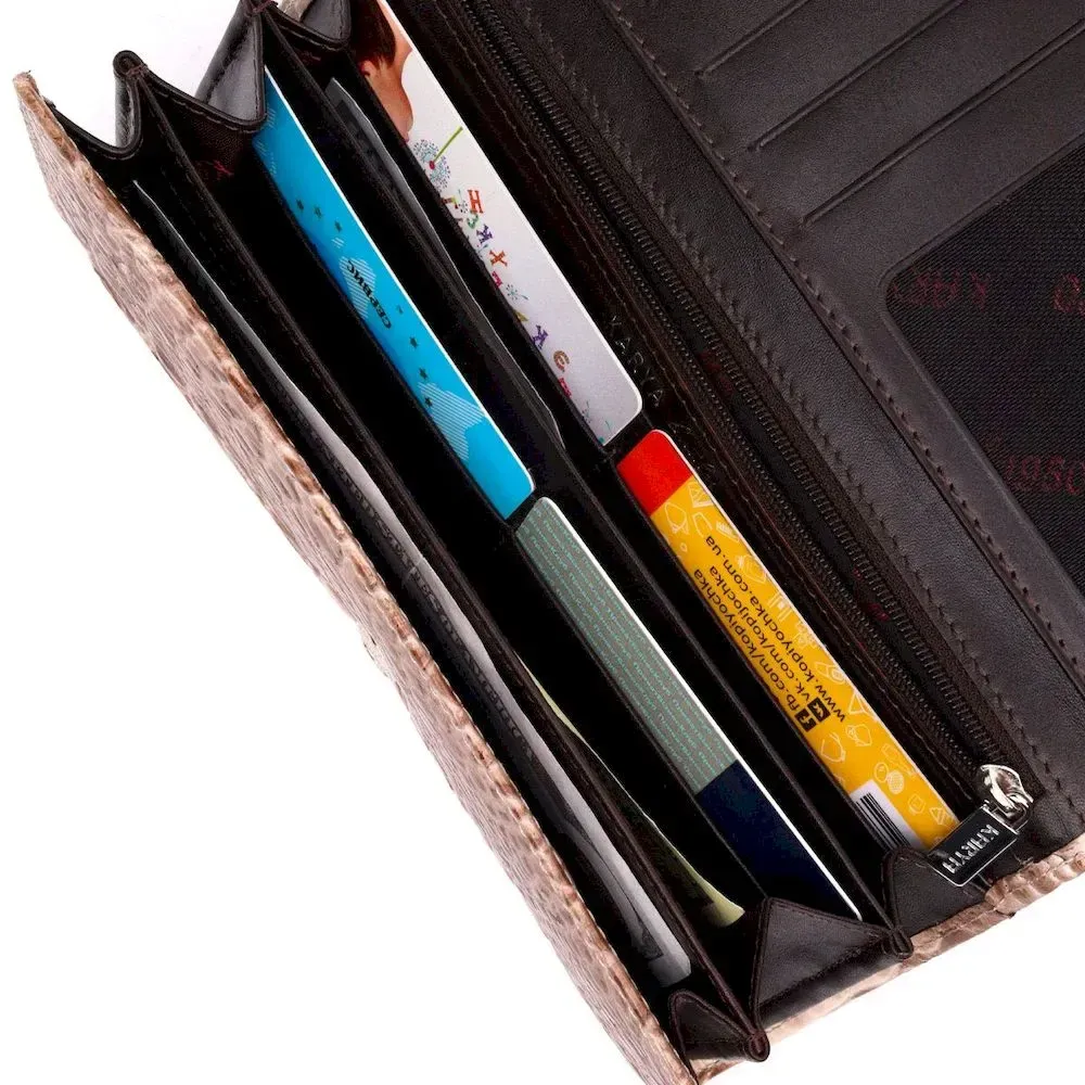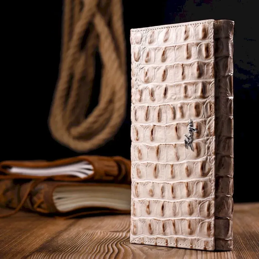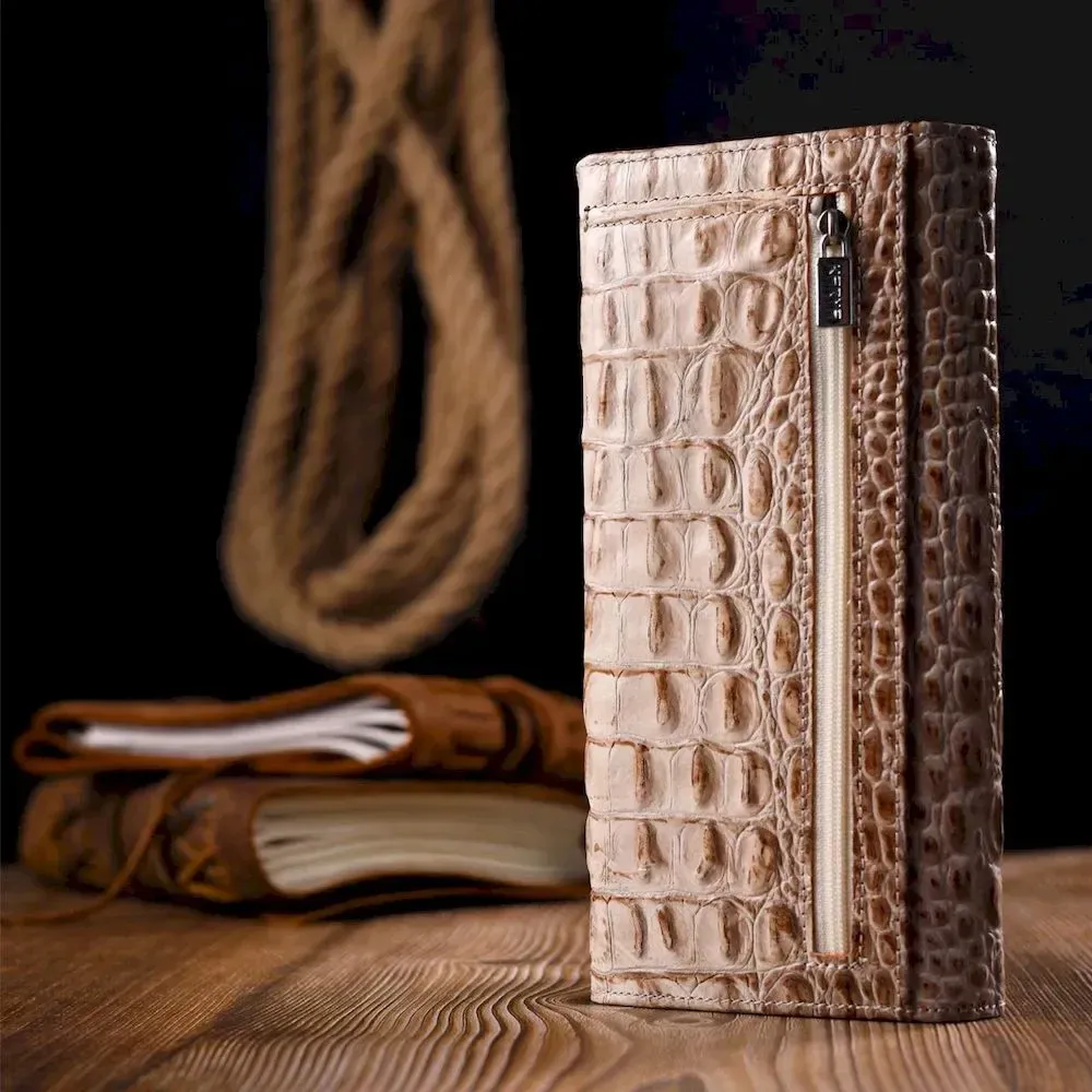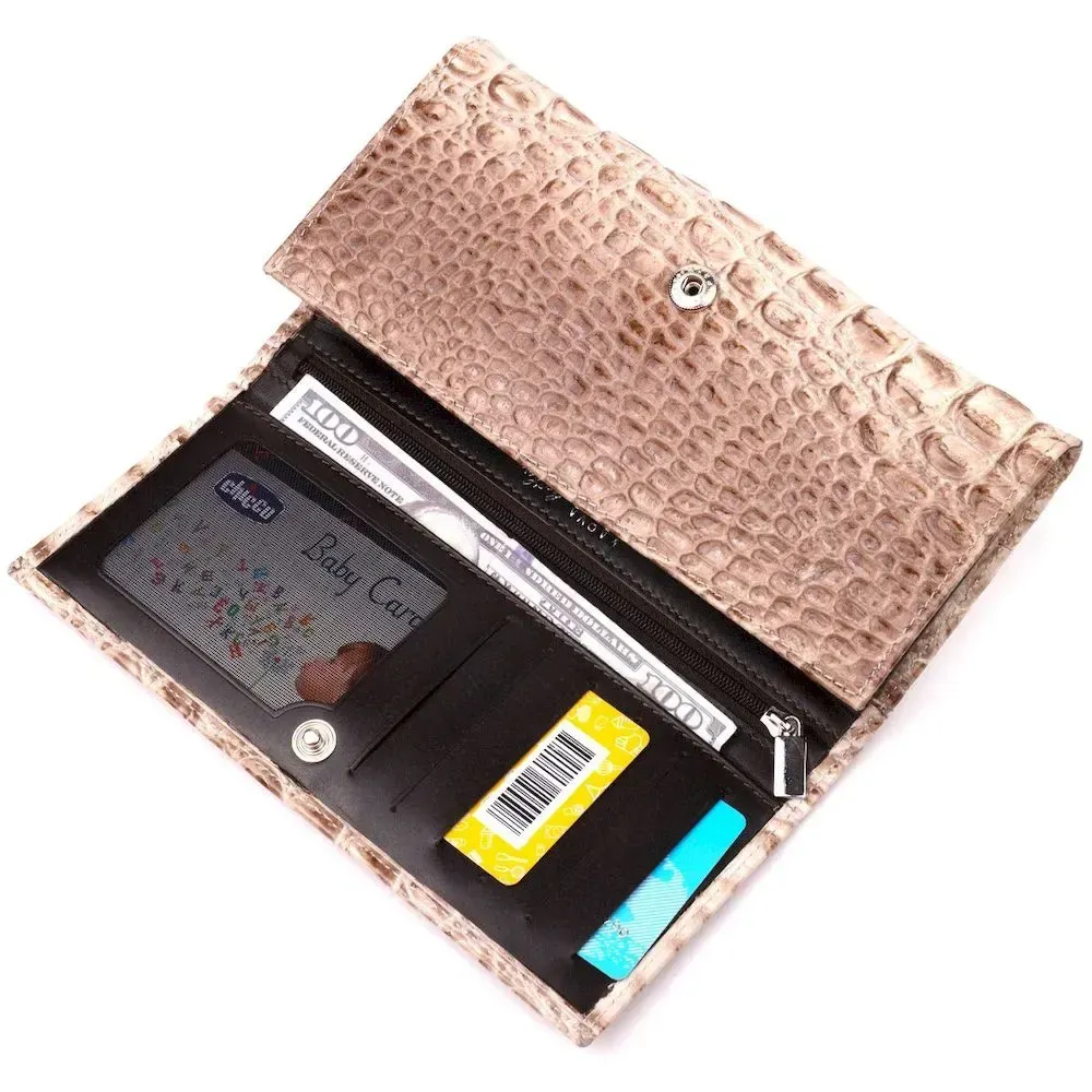 Жіночий гаманець з натуральної шкіри з тисненням під крокодила KARYA 21163 Бежевий