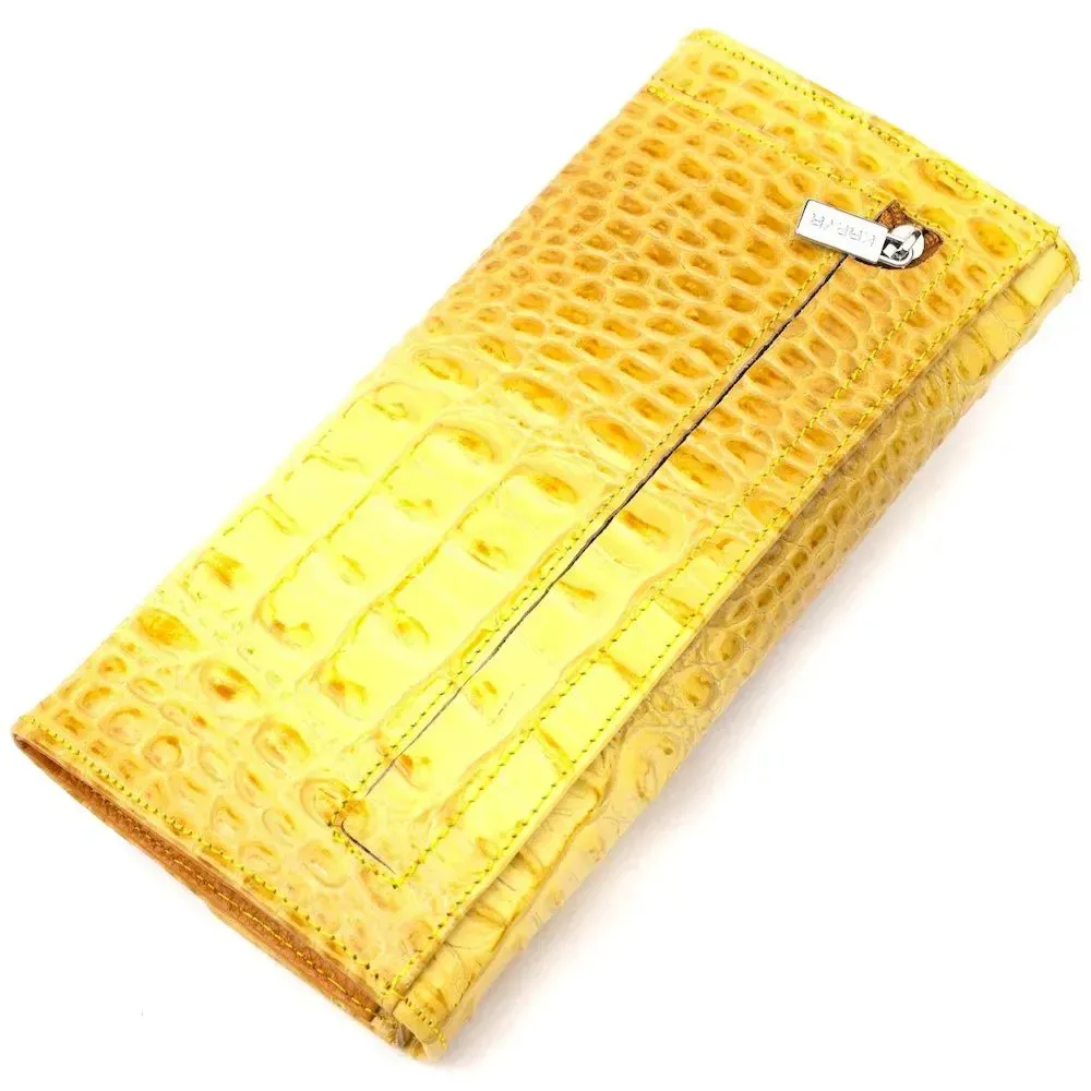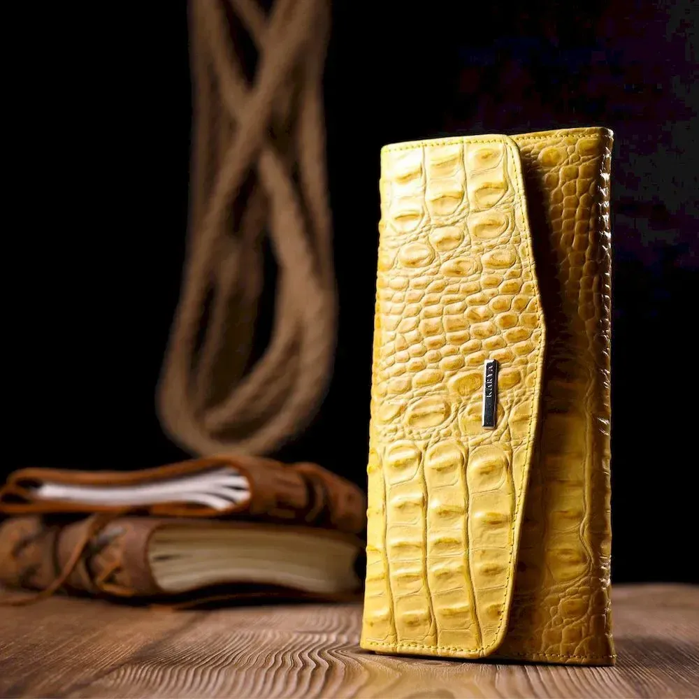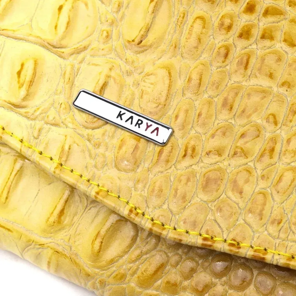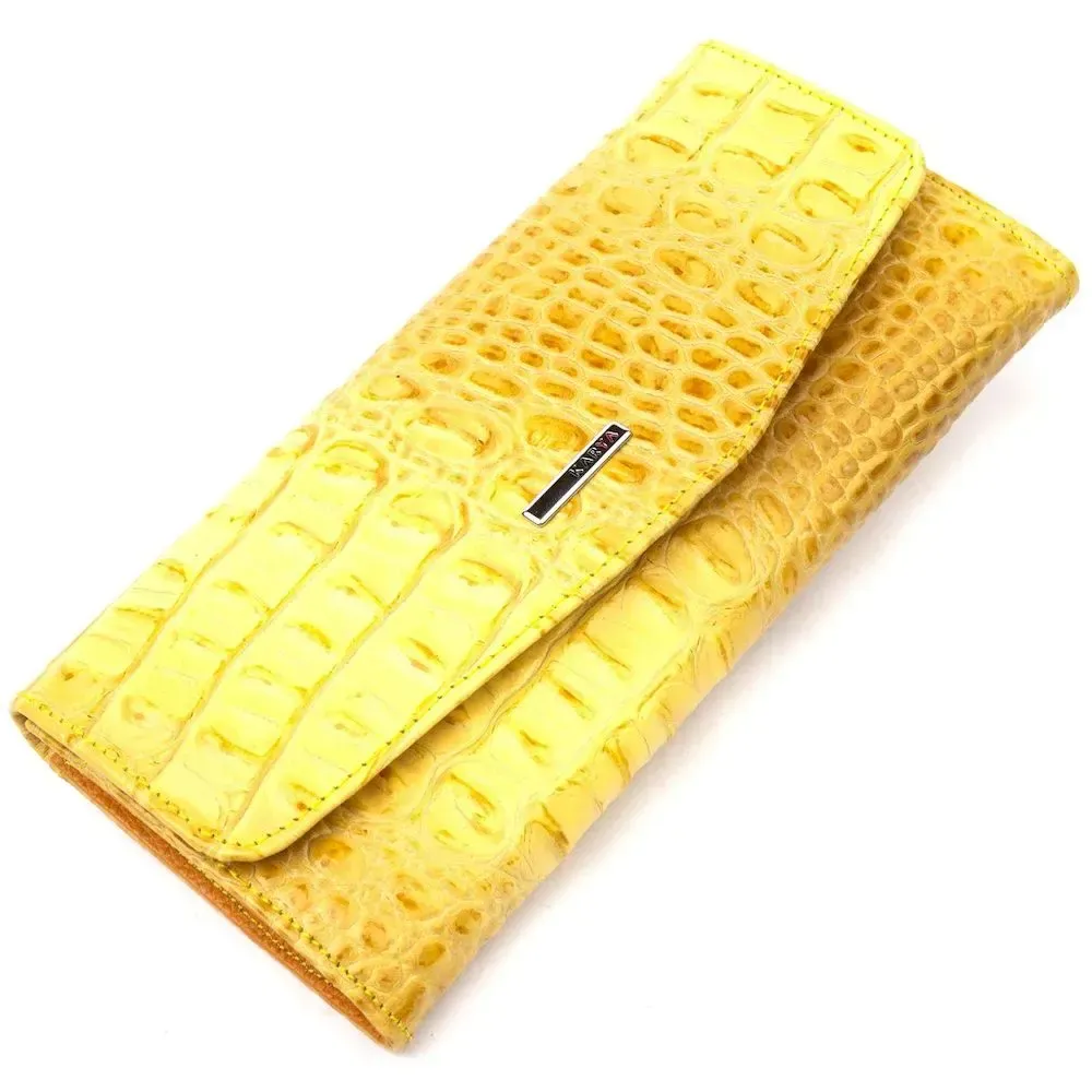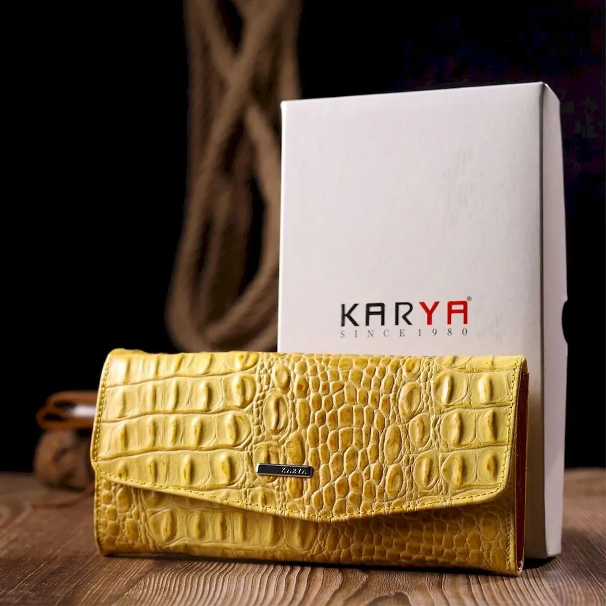 Горизонтальний жіночий гаманець із клапаном із фактурної шкіри під крокодила KARYA 21108 Жовтий