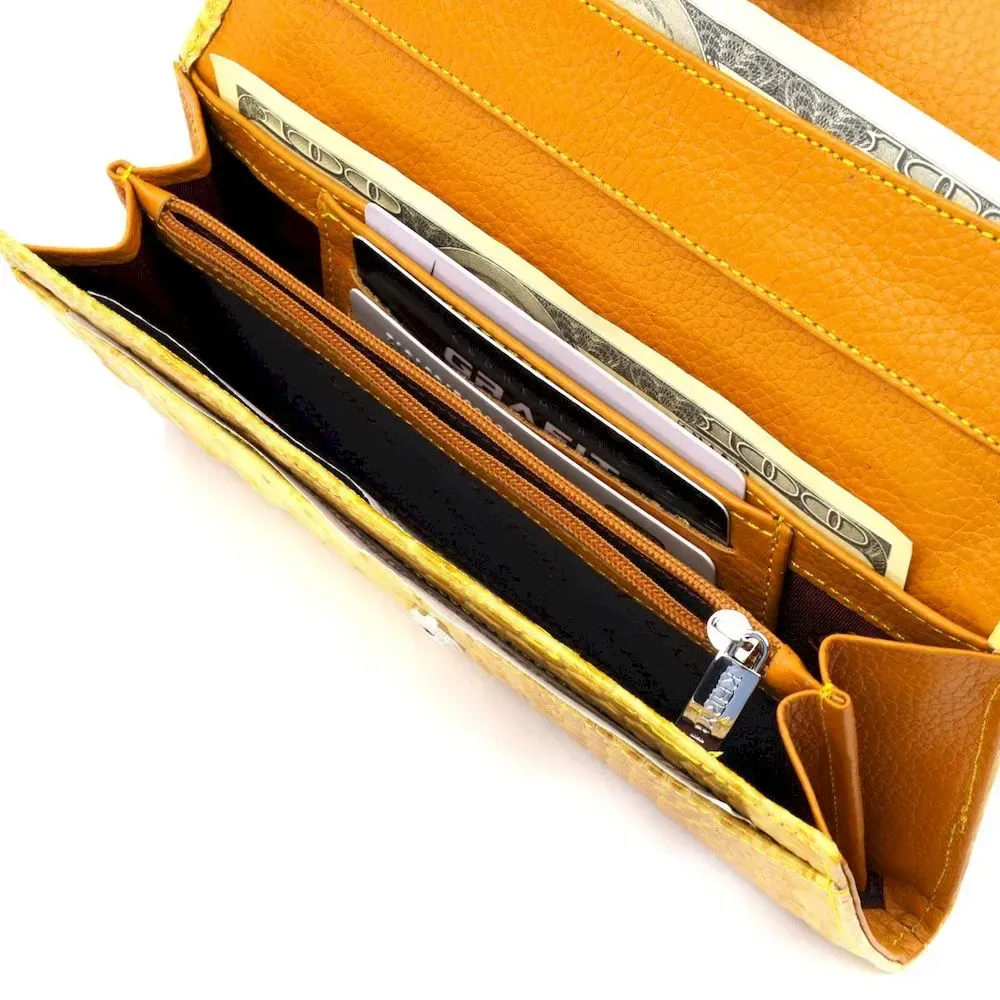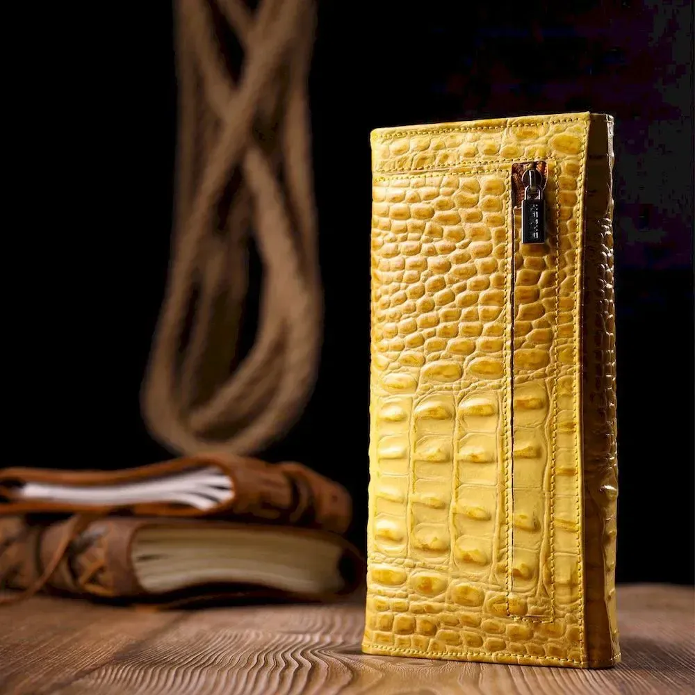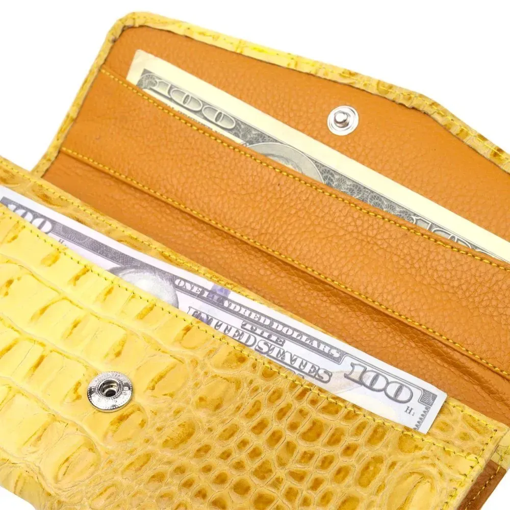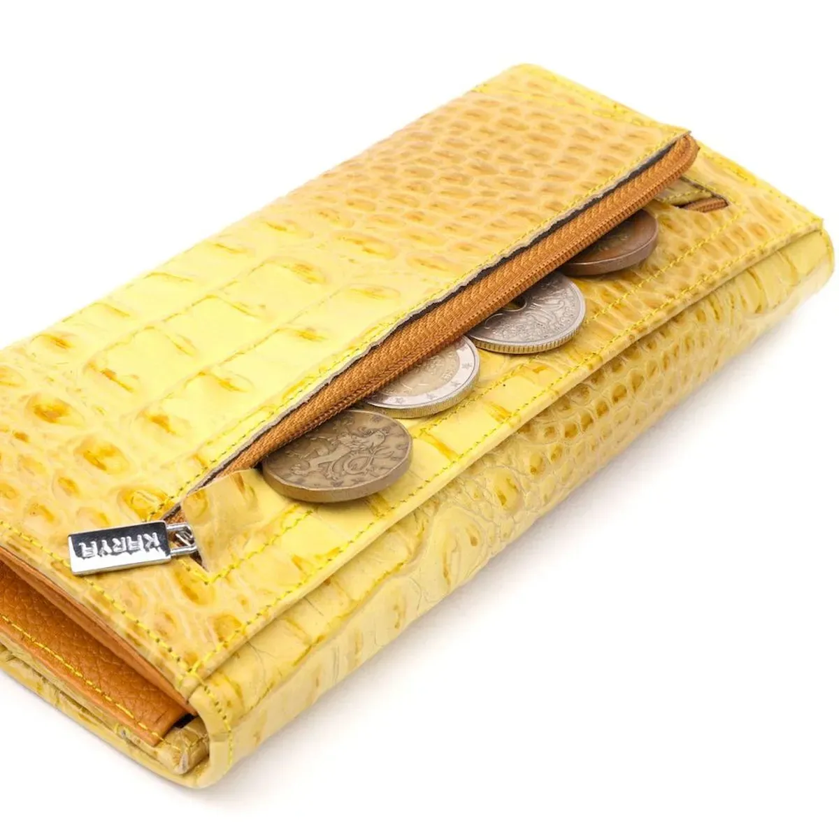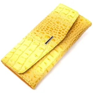 Горизонтальний жіночий гаманець із клапаном із фактурної шкіри під крокодила KARYA 21108 Жовтий