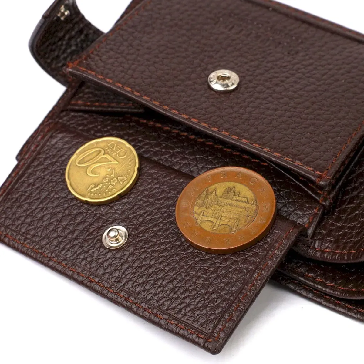 - монетниця, що закривається клапаном на кнопку;