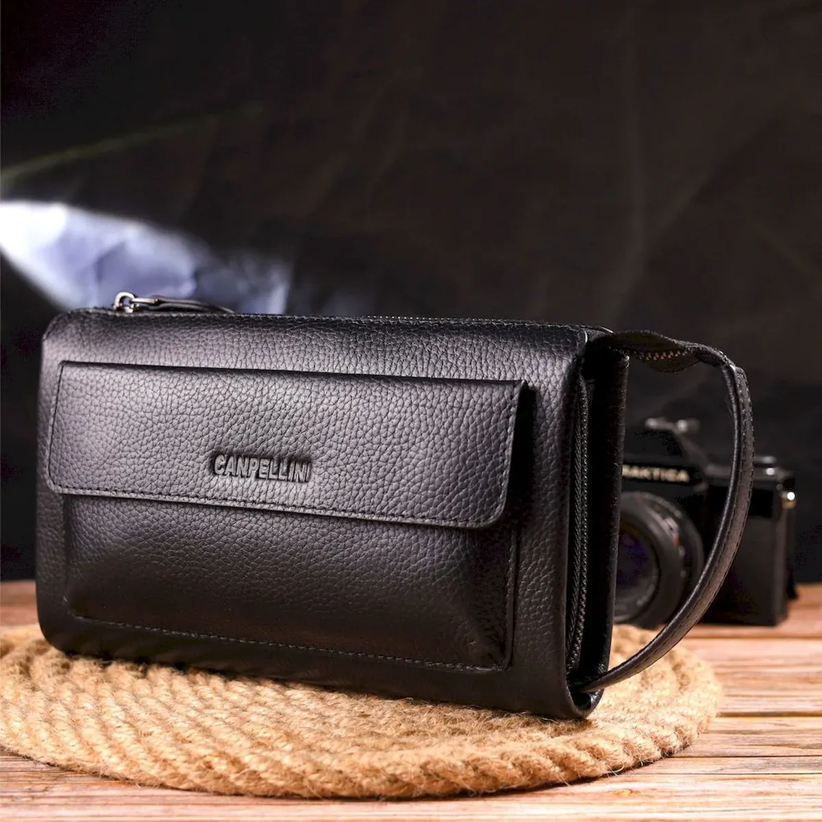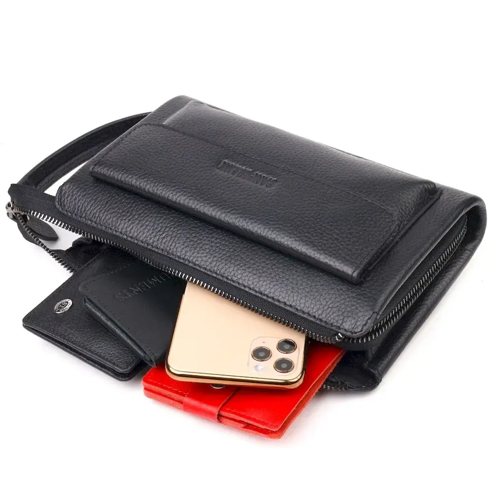 Ідеальний чоловічий клатч із натуральної зернистої шкіри CANPELLINI 21560 Чорний