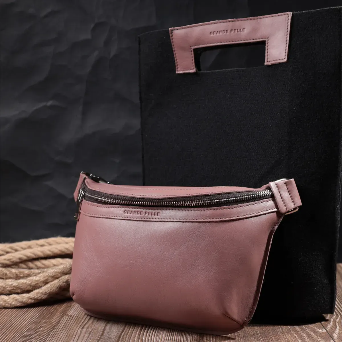 Цікава бананка для жінок з натуральної шкіри GRANDE PELLE 22816 Бежевий