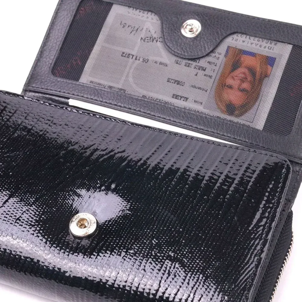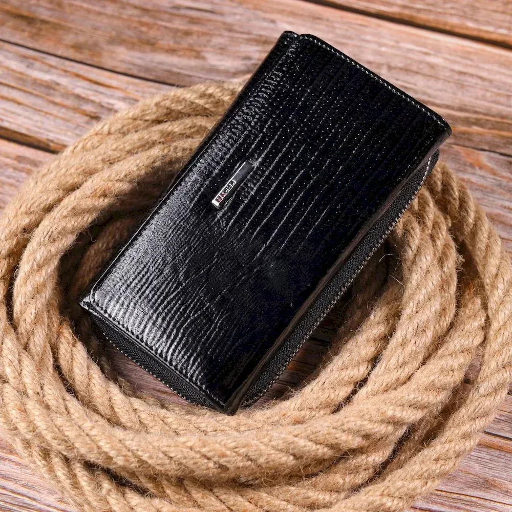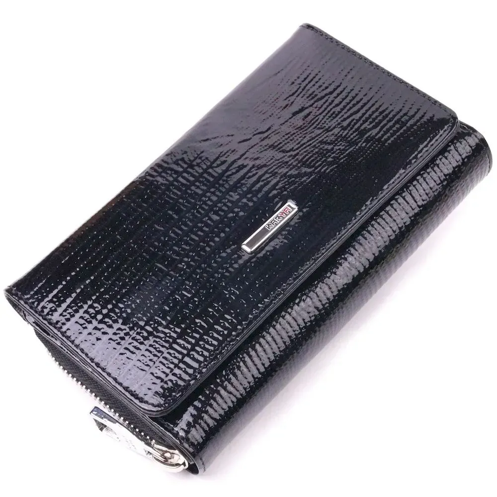 Цікаве жіноче портмоне з лакованої фактурної шкіри KARYA 21431 Чорний