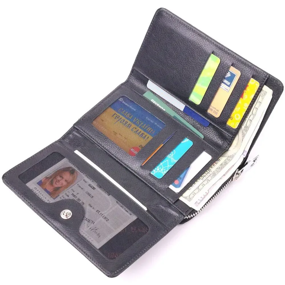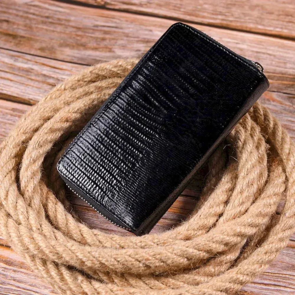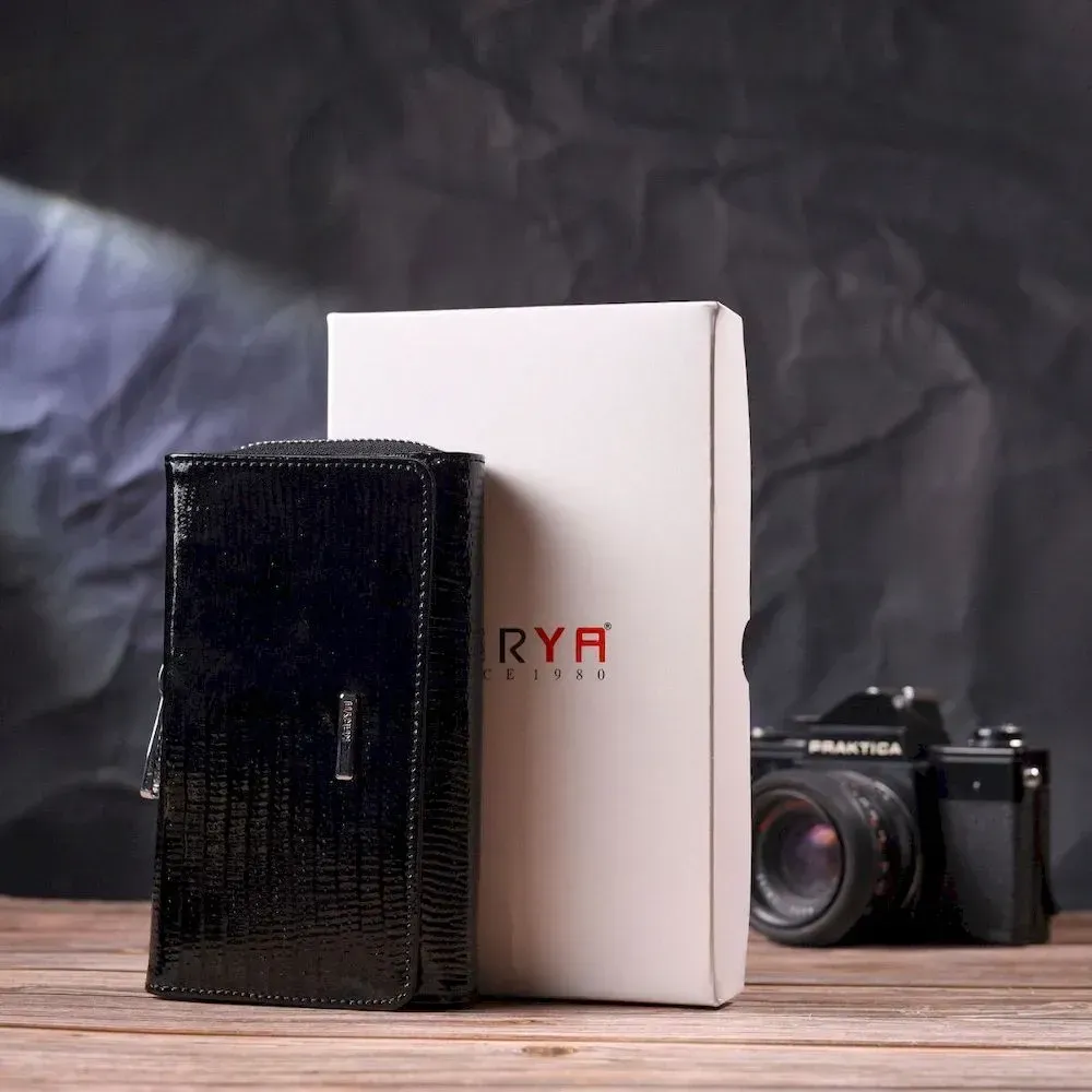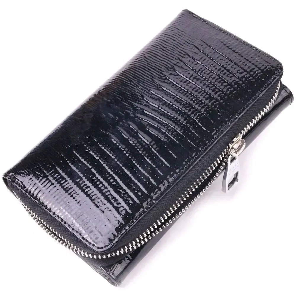 Цікаве жіноче портмоне з лакованої фактурної шкіри KARYA 21431 Чорний