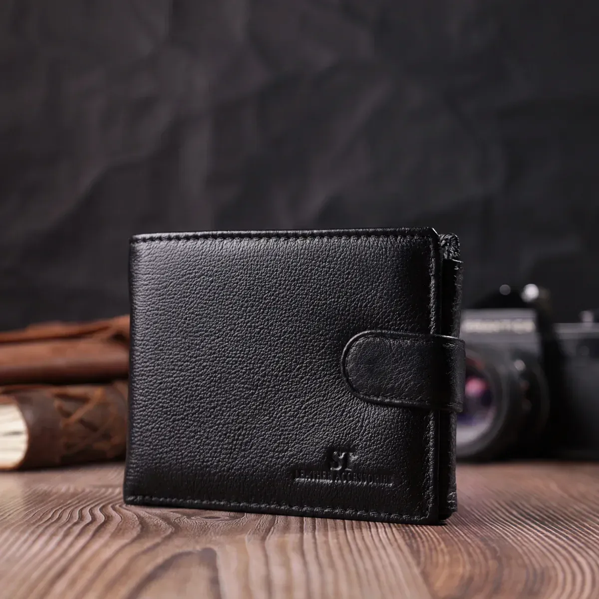 Цікавий гаманець із блоком під документи з натуральної шкіри ST Leather 22480 Чорний