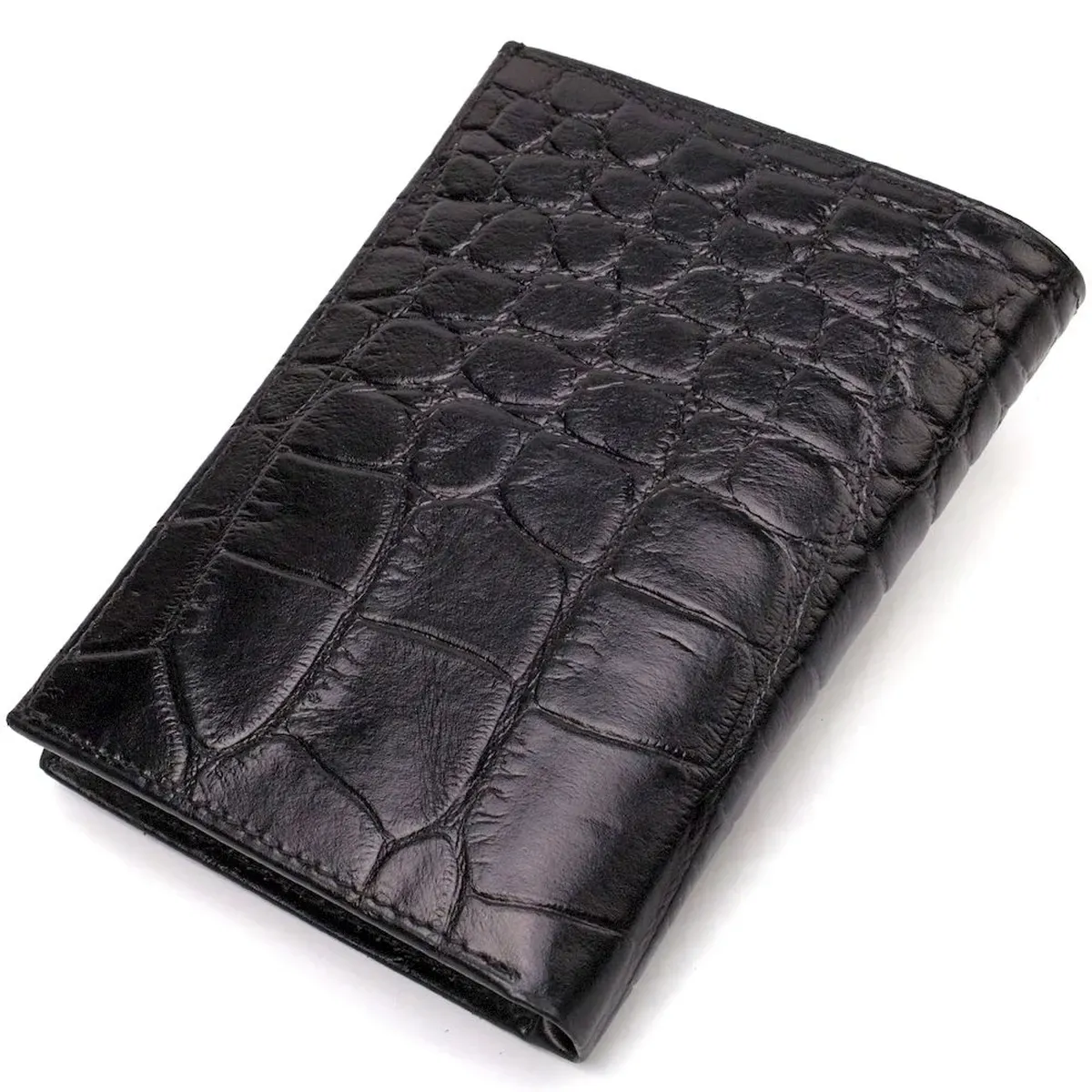 Цікавий чоловічий гаманець вертикального формату з натуральної шкіри з тисненням під крокодила CANPELLINI 21755 Чорний