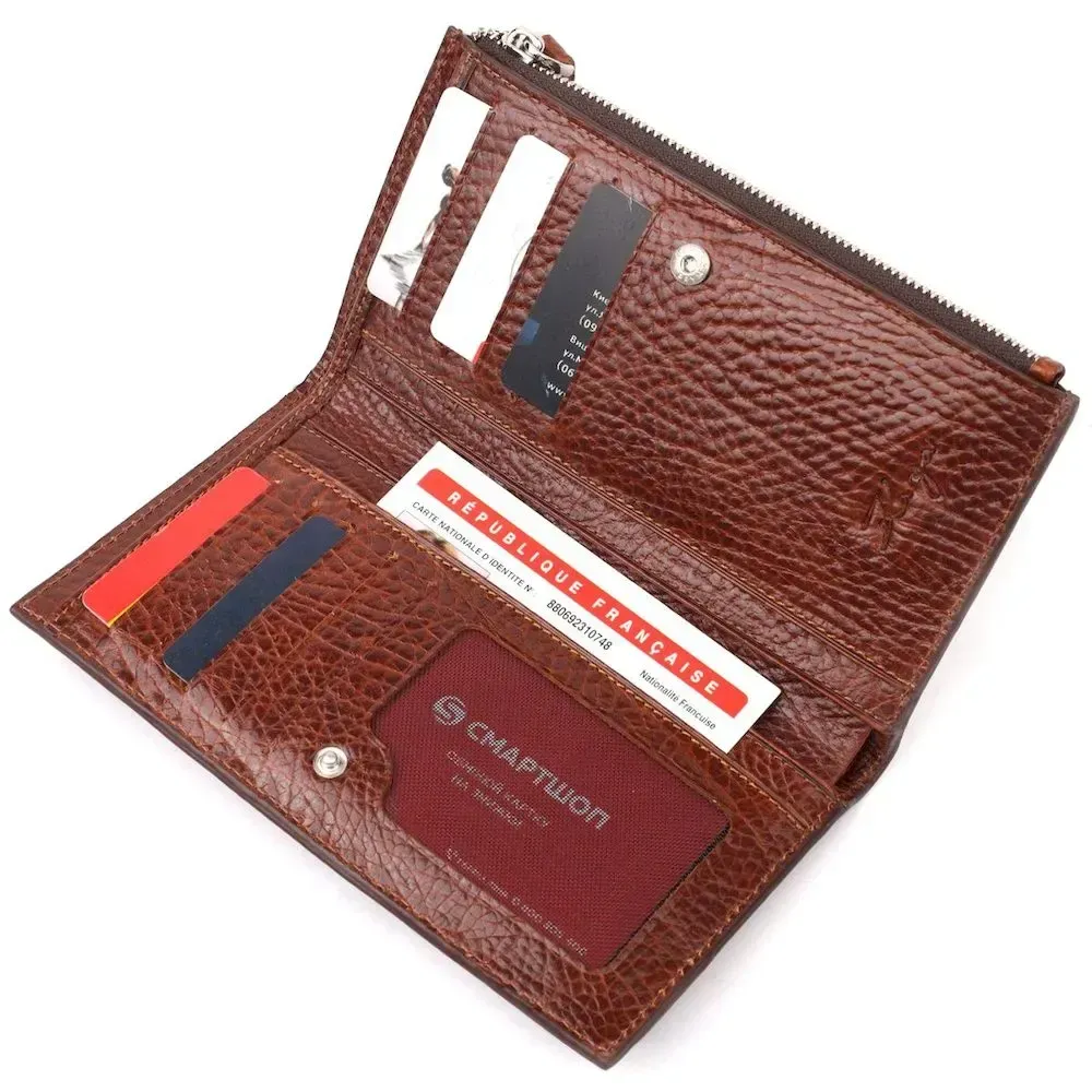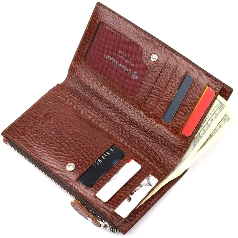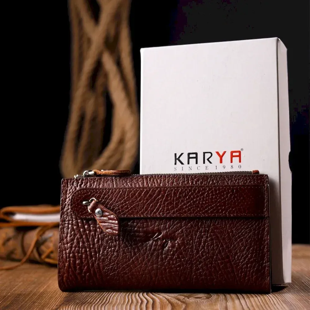Цікавий складний гаманець з натуральної шкіри KARYA 21131 Коричневий